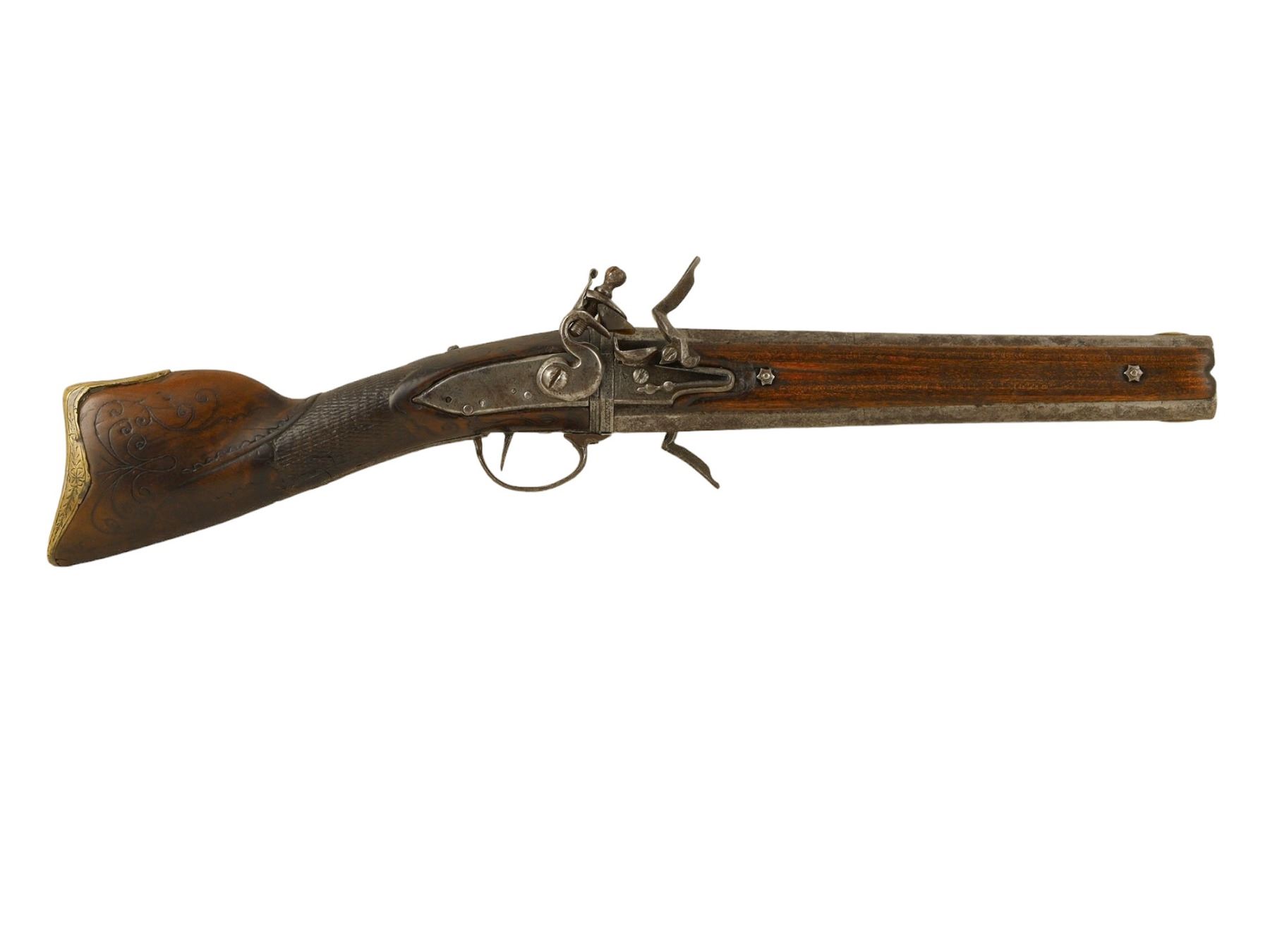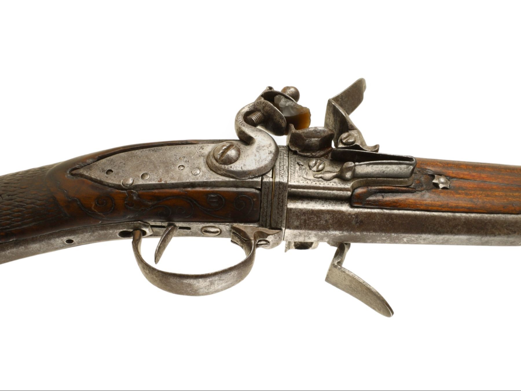 A DUTCH WEIDER ACTION TWO-BARREL BLUNDERBUSS, 18TH CEN.