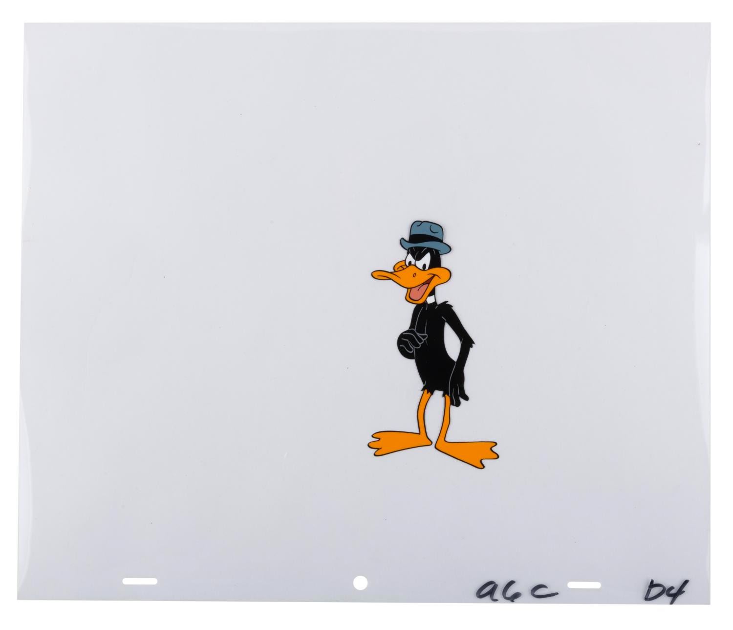 (Warner Bros., 1970s-80s) An original hand-painted production cel of Daffy Duck from an unknown production. With a character image of 4.5” x 2.5” on a 10.5” x 12.5” cel, the piece is in fine production-used condition.