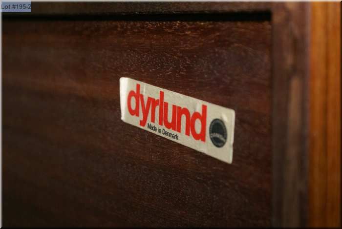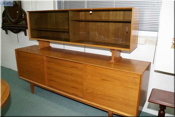 A Danish made teak sideboard with glass display sliding door, five drawer and two wooden sliding doors marked Dyrlund, Denmark to match lot 19