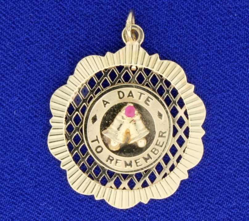 14K yellow gold, this charm is 1 1/4 inches long with bale, and can be engraved with names/dates on back. 4.0g