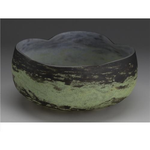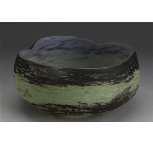 <B>A French Art Glass Bowl</B></I><BR><BR>Daum, Nancy, France<BR>Circa 1900<BR>Colored glass<BR>Marks: (Cross of Lorraine), <I>Daum Nancy</B></I><BR>3.7 in. high x 8 in. diameter<BR><BR>The bowl in a mottled ground of brown to green to brown <BR><BR><B>Important notice:</