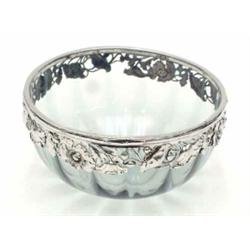 A Daum, Nancy smoked glass bowl, lightly moulded and mounted with French silver rim embossed with...