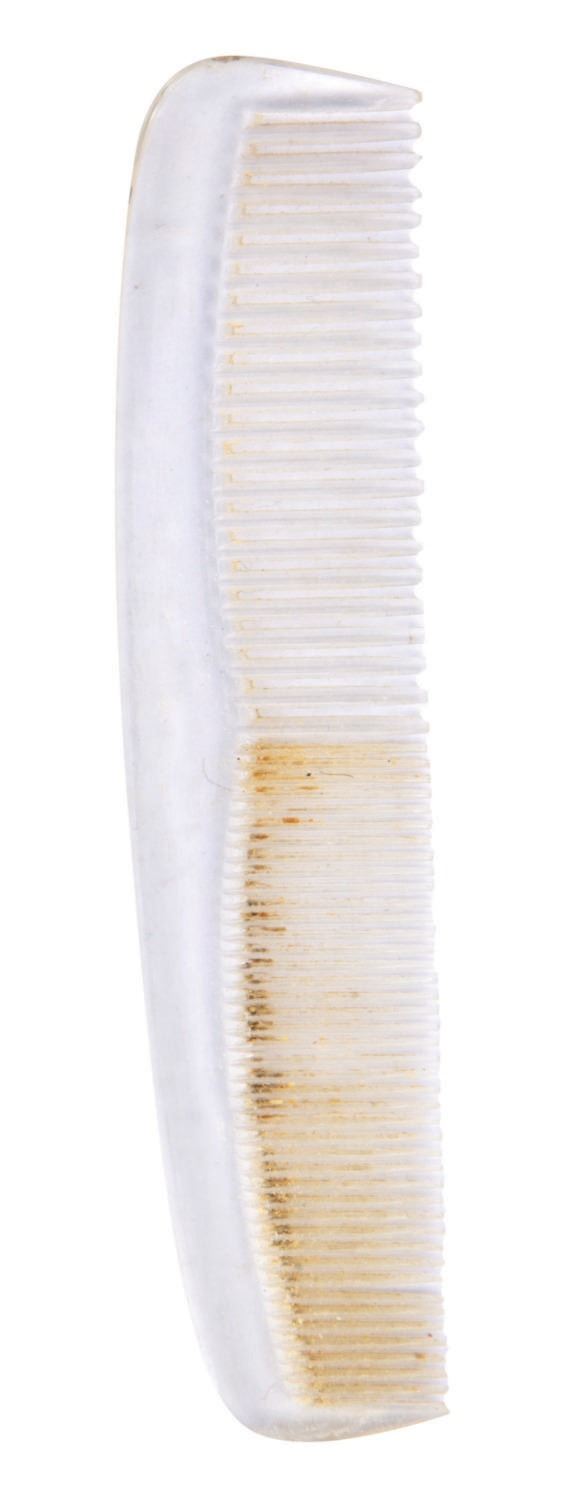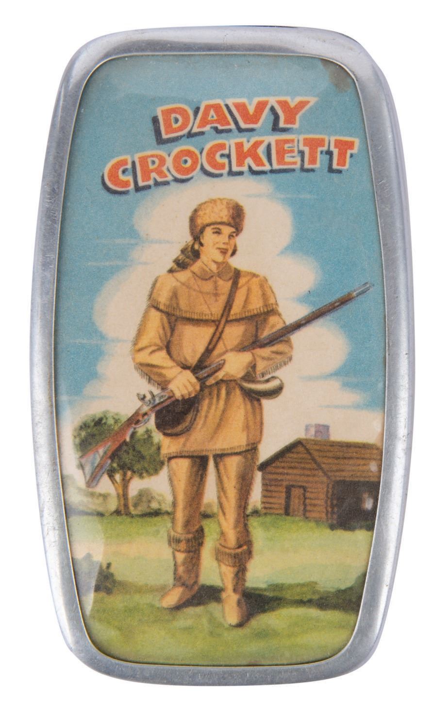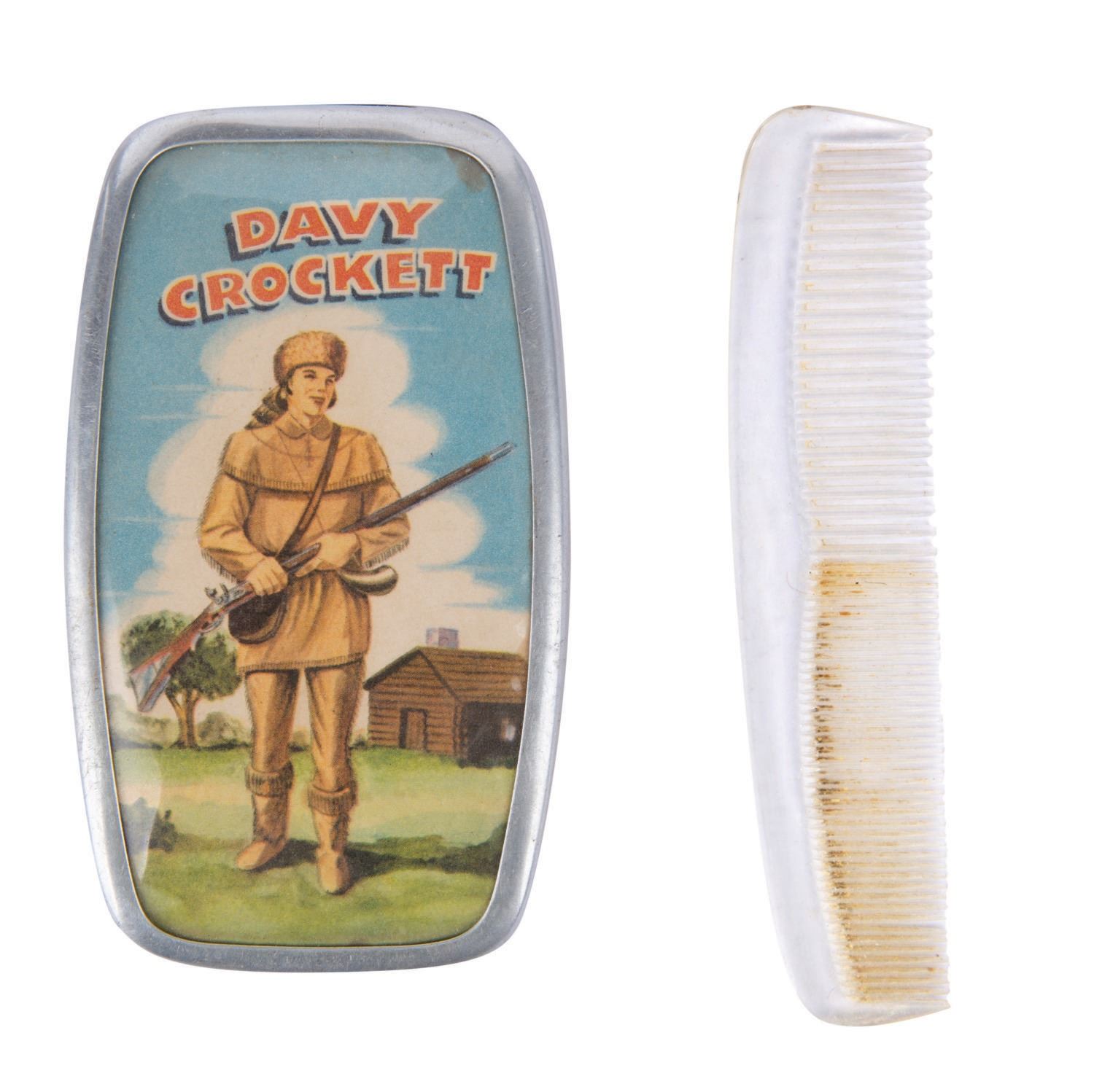 (1950s) A Davy Crockett Nylon Brush and Comb. Measuring 5.25"x2.5", the set is in very good condition with light wear from use and staining to the comb.