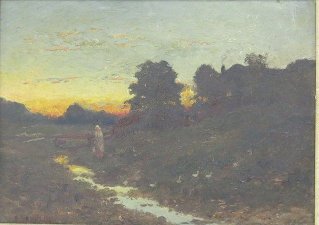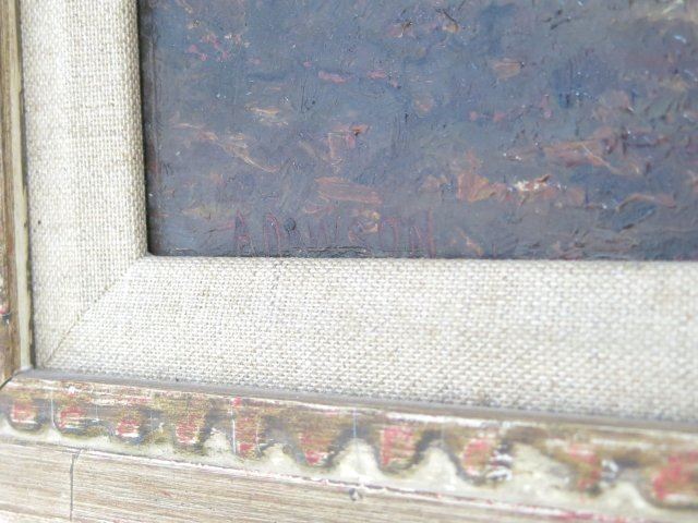 Oil on board. Framed. Signed lower left. A. Dawson, American (1866-1909). Restorations.
