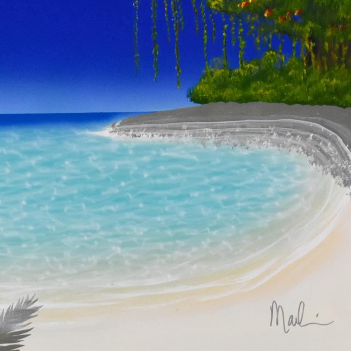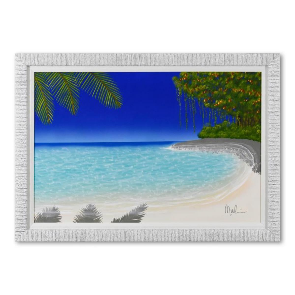 "A Day At The Beach" is an original oil painting on canvas by Dan Mackin, hand signed by the artist. This piece comes framed. Includes Letter of Authenticity. Measures approx. 41.5" x 29" (framed), 35.5" x 23.5" (image).