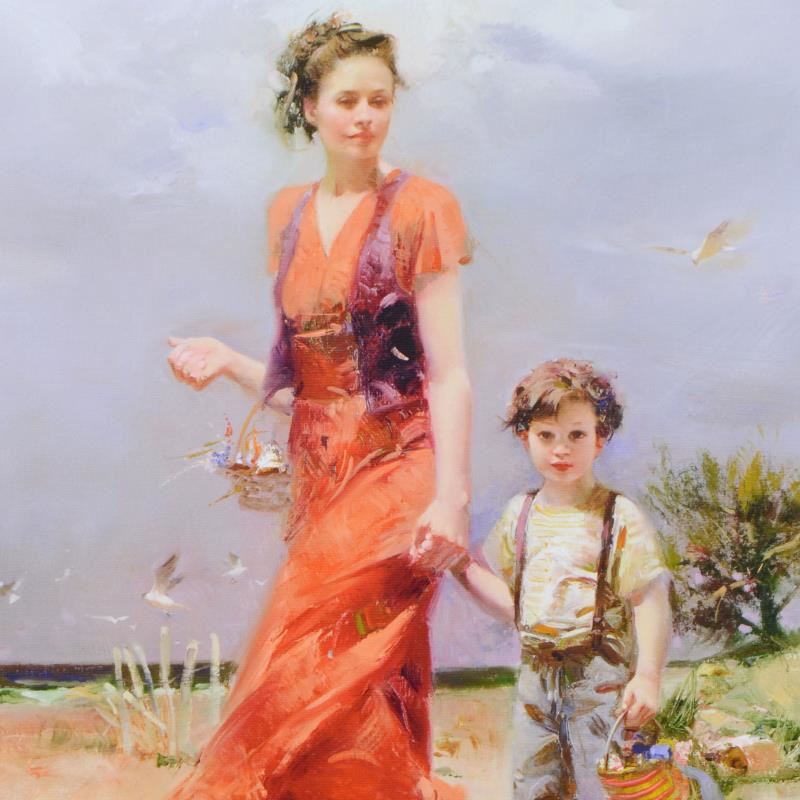 "A Day at the Beach" is a limited edition giclee on canvas by Pino (1931-2010), numbered and hand signed by the artist. Includes Certificate of Authenticity. Measures approx. 12" x 16" (image).