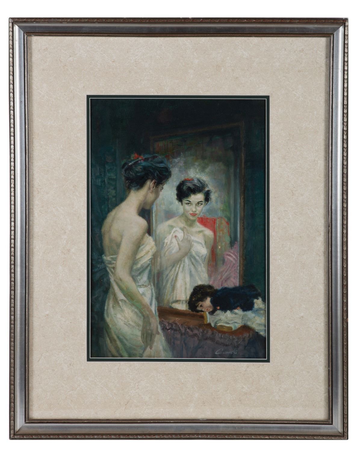 (Cozzorelli, 1950) The original painting for the cover of "A Diary of Love" by prolific pulp artist Frank Cozzorelli. Accomplished in gouache, the painting is signed at the lower right by the artist. Measuring 23.5"x30", the painting is in fine condition.