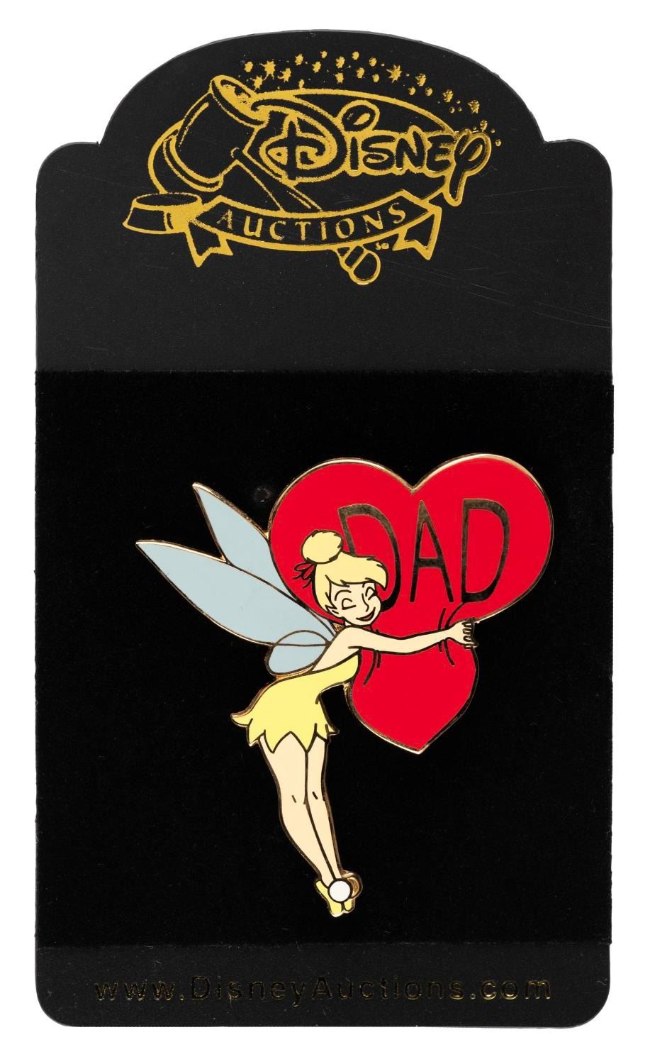 (Disney, 2004) A Disney Auctions Tinker Bell “Dad” pin, released in a limited edition of 1000. Measuring 1.75” x 2” the pin is mint on card.