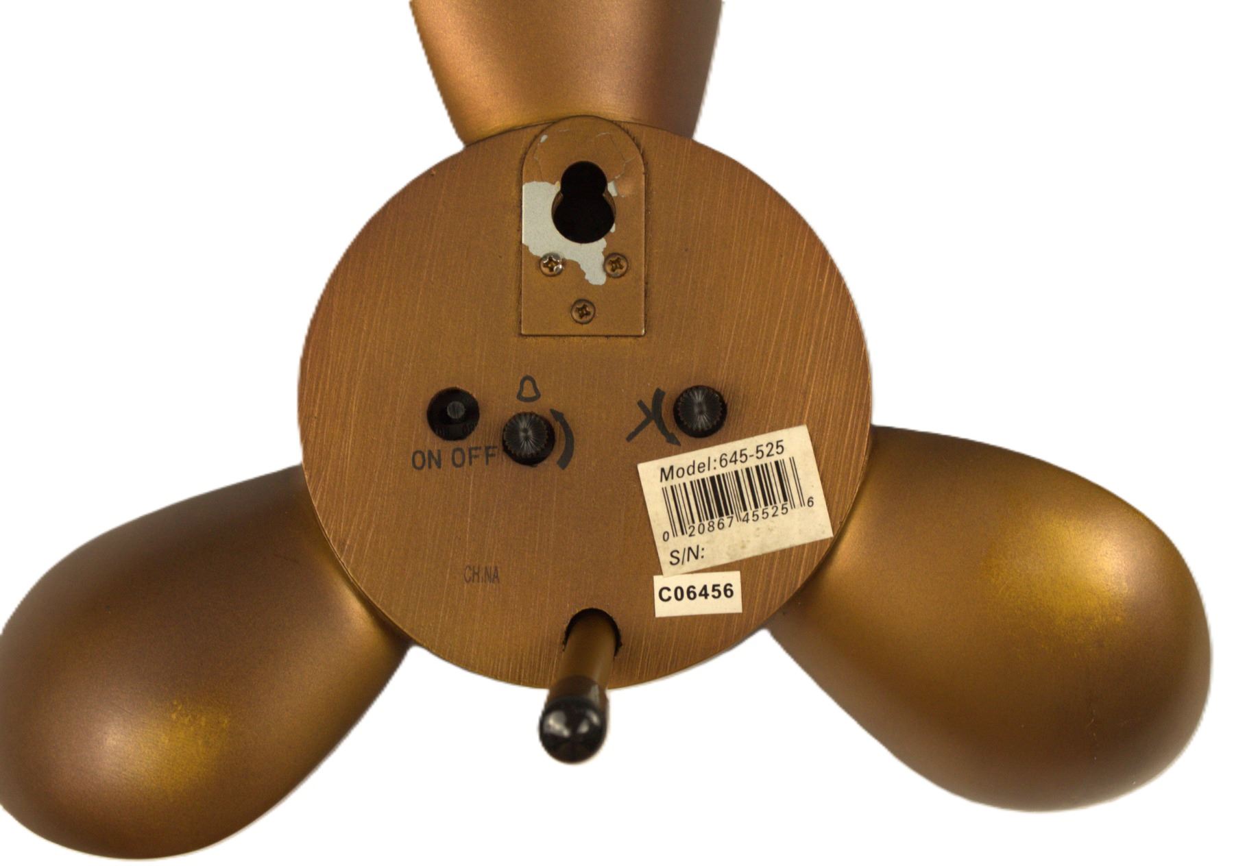 This is a a rare Disney Cruise Line propeller shaped alarm clock by Howard Miller. Clocks like this were found in the cabins of the Disney Magic and Disney Wonder cruise ships. The clock is fashioned as a replica of the propellers of DCL ships, and is finished in an antique copper color. The three blade propeller is the style of clock that was released for the first wave of clocks sold on the ships with later versions exhibiting more blades and a DCL logo on the clock face. Measuring 8"x8.75" and 2" thick, the clock is in good condition with only a little paint missing from the wall hanger on the back of the clock. Clock is tested and working. Requires one AA battery.