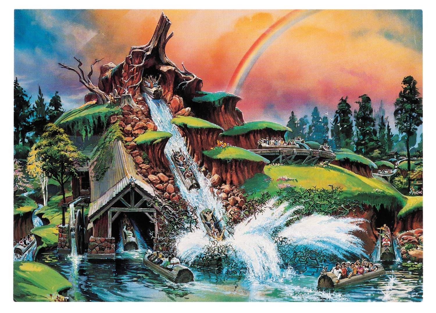 (Disneyland, 1988) A signed Splash Mountain postcard from The Disney Gallery. The postcard features artwork by Dan Gooze, who signed the reverse in green marker. Measuring 5” x 7”, the postcard displays in very good condition with light creases.