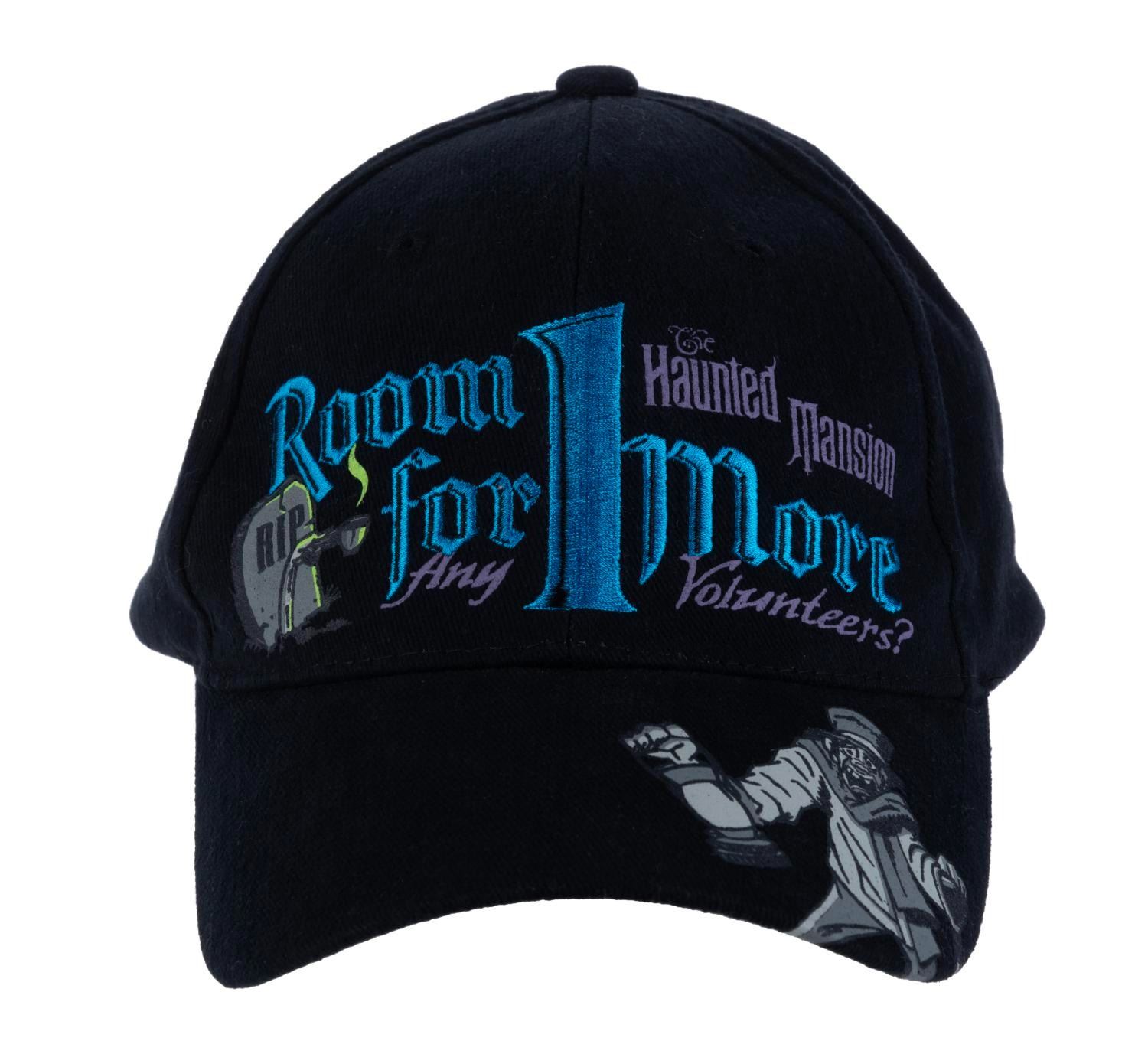 (Disney Parks,2000s) A Haunted Mansion Room For 1 More Baseball Cap. The adjustable cotton hat is in fine condition with a few signs of wear from handling.