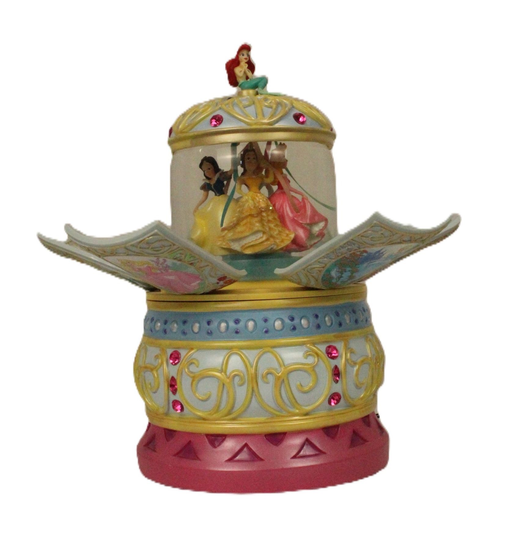 (Disney Store) This is a Disney Store Enchanted Princesses Snow Globe. It Plays When you Wish Upon A Star.” the princesses dance around a maypole inside the snowglobe.