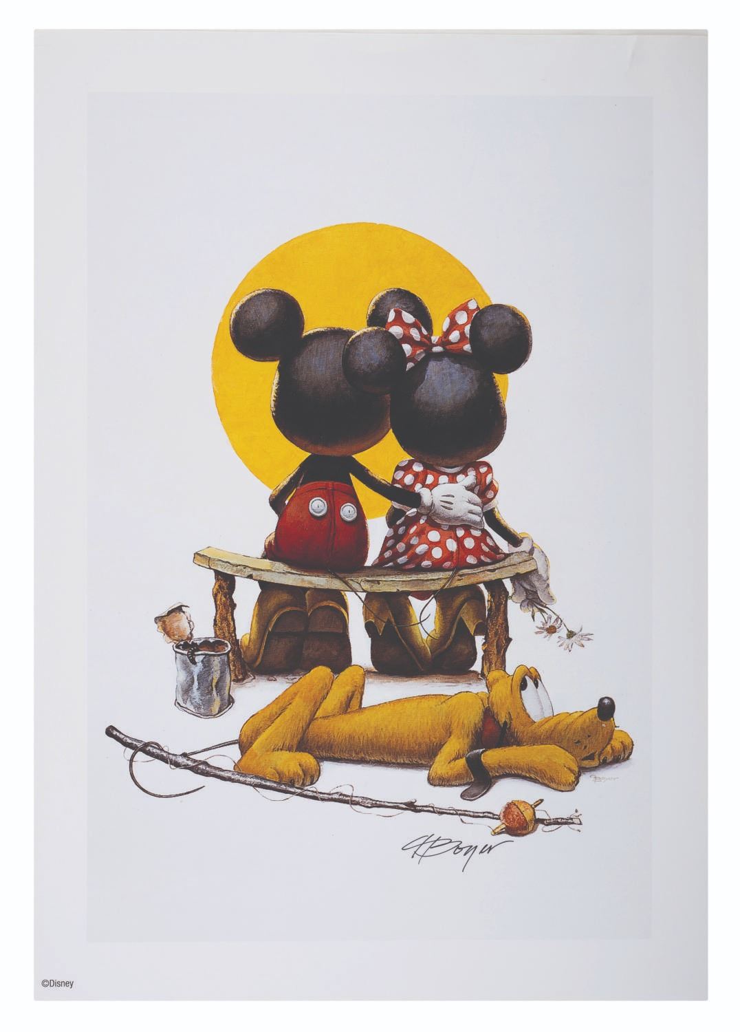 (Disney, 1996) A signed lithograph by Charles Boyer titled "Puppy Love," inspired by Norman Rockwell's illustration for the April 24, 1924 cover of the Saturday Evening Post. Part of a limited edition of 200 and measuring 11" x 15.5", the print is in very good condition with light surface wear and two small marks near Pluto's ear.