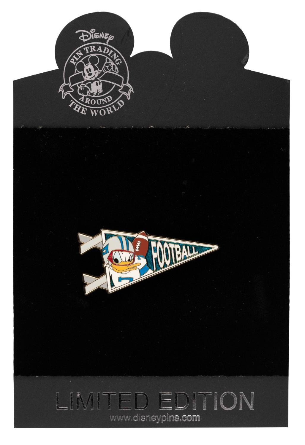 (Disney, 2008) A Disney Shopping Donald Duck football pin, released in a limited edition of 250. The pin is in fine condition on the original card.