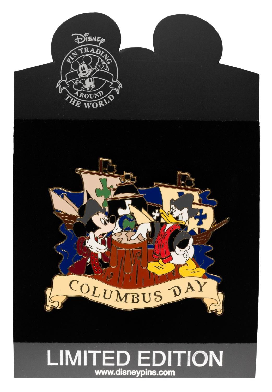 (Disney, 2007) A Disney Shopping Columbus Day pin of Mickey and Donald, released in a limited edition of 500. Measuring 2.75" x 2.5", the pin is in very good condition with light scratches.