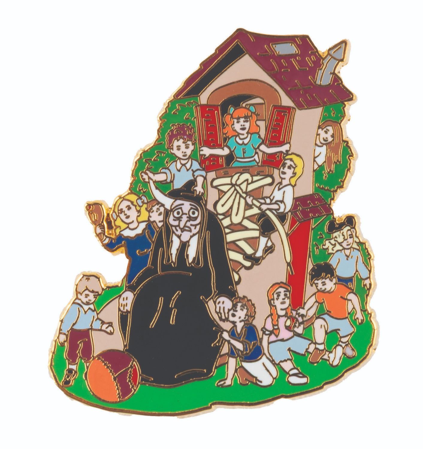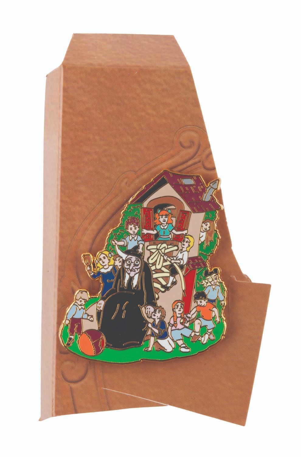 (Disney, 2007) A pin of the Hag from "Snow White" as the Little Old Lady who Lived in a Shoe. This pin is from the Disney Shopping exclusive Nursery Rhyme series, released in a limited edition of 800. Measuring 1.75" x 2" the pin is in fine condition.
