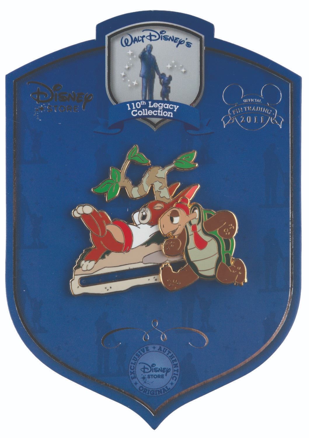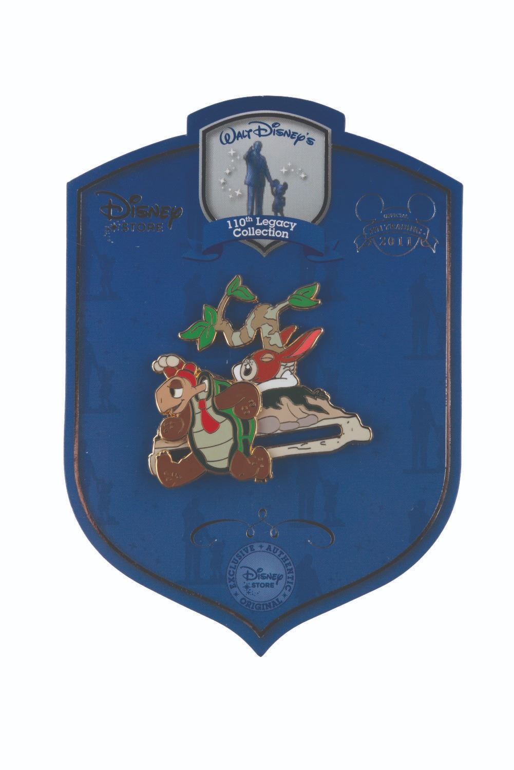 (Disney Store, 2011) A pin with slider feature of the Silly Symphony short “The Tortoise and the Hare,” released in a limited edition of only 250 to celebrate Walt Disney’s 110th birthday in 2011. Measuring 2” x 1.75”, the pin is in fine condition on the original card.