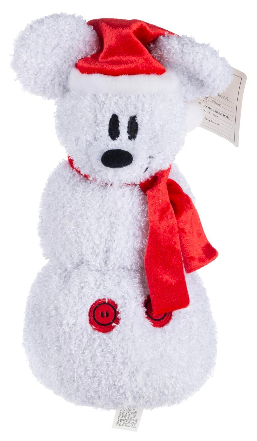 (Disney Store, 2001) A final approval production sample Mickey Mouse snowman plush. Measuring 5"x6.5" and 13" tall, the plush is in very good condition with light soiling on the reverse.