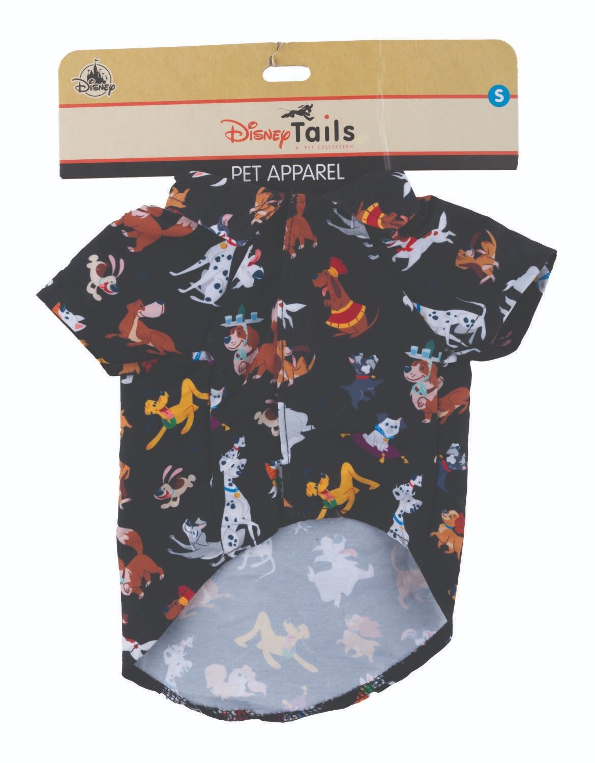 (Disney, 2020s) A Disney Tails pet apparel shirt for dogs featuring characters from “Lady and the Tramp,” “One Hundred and One Dalmatians,” “Mulan,” “Pocahontas,” “The Princess and the Frog,” and “Peter Pan.” Labeled a size S, the unused shirt is in fine condition, intended for pet use only.
