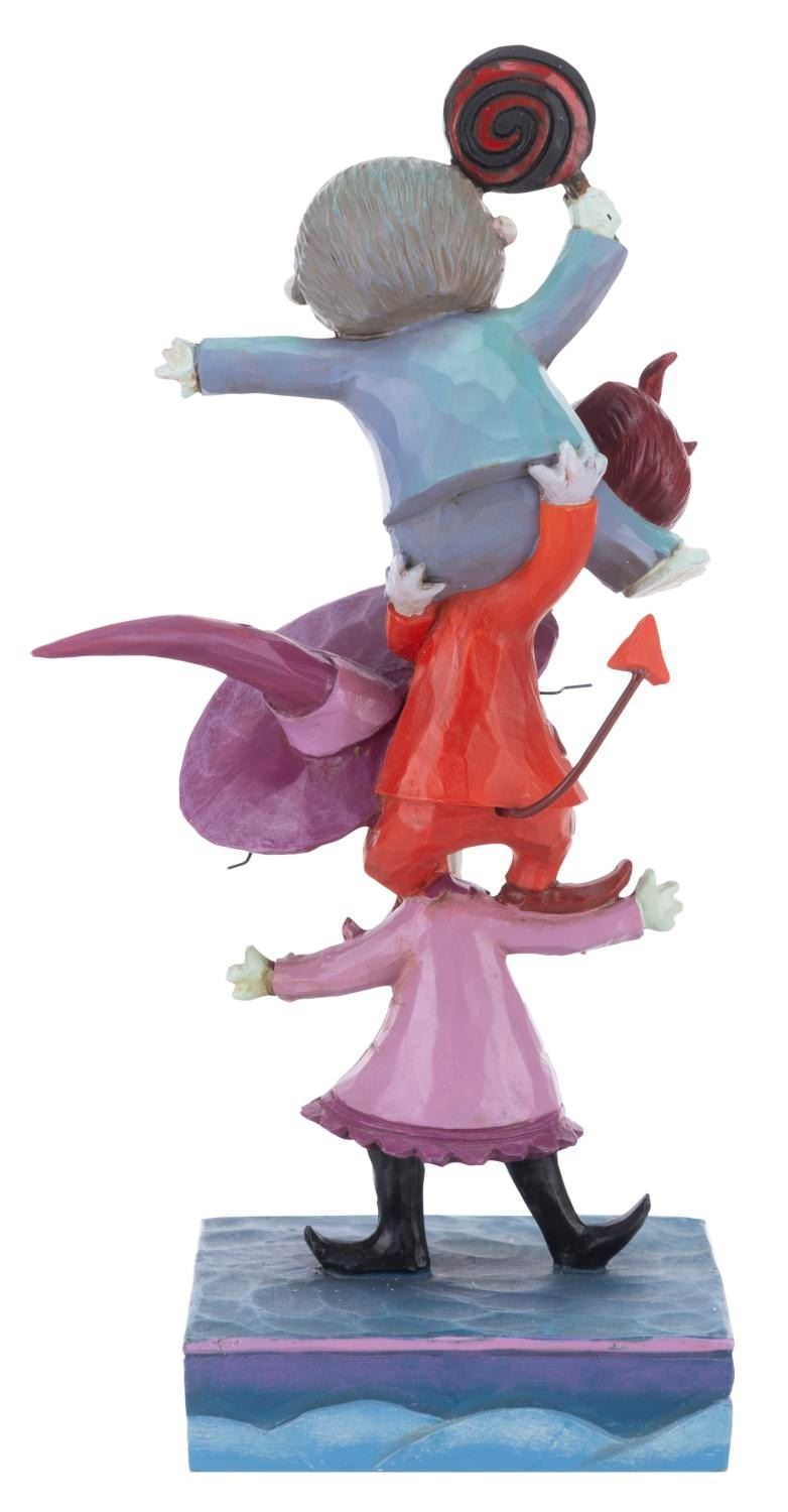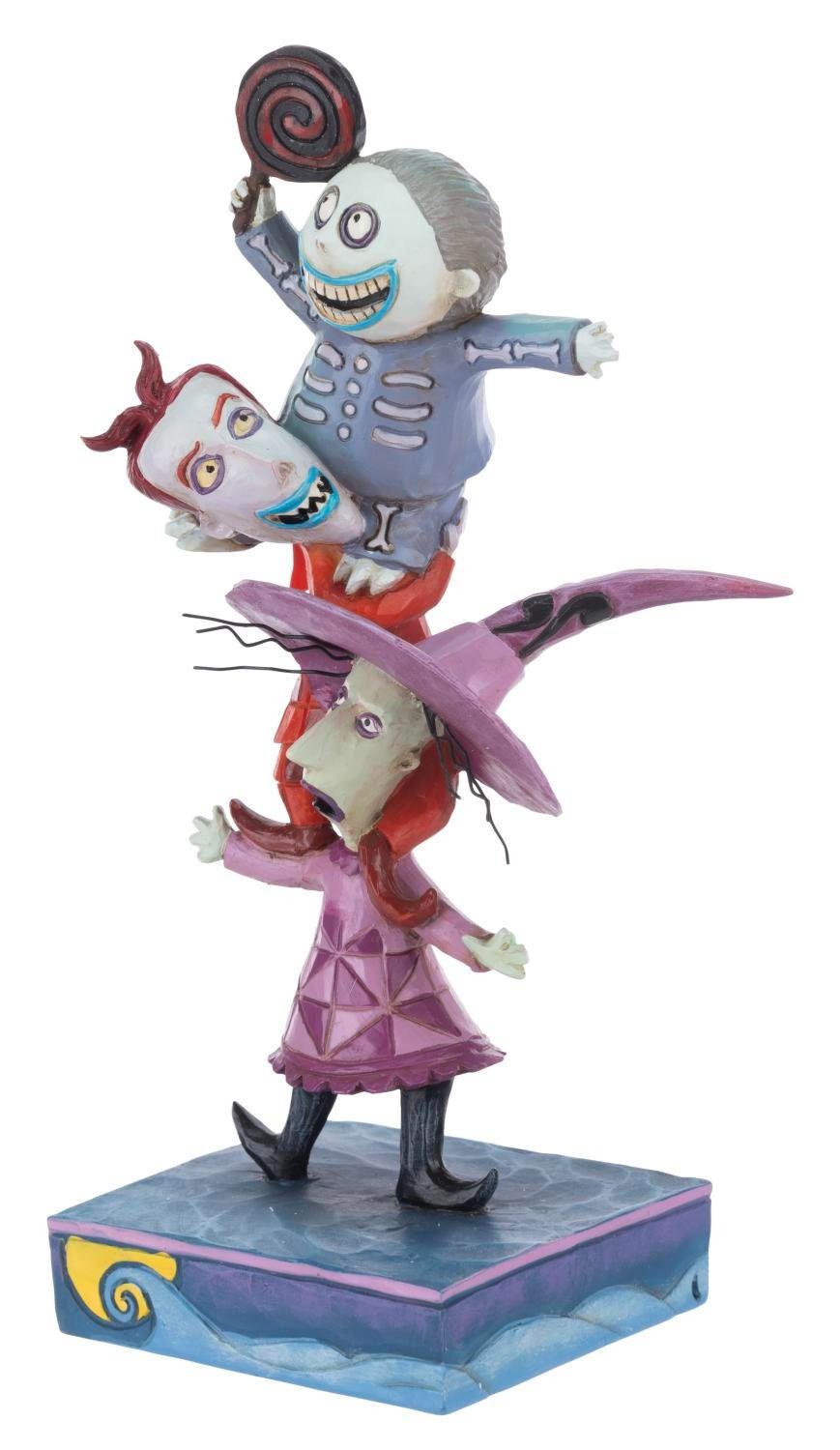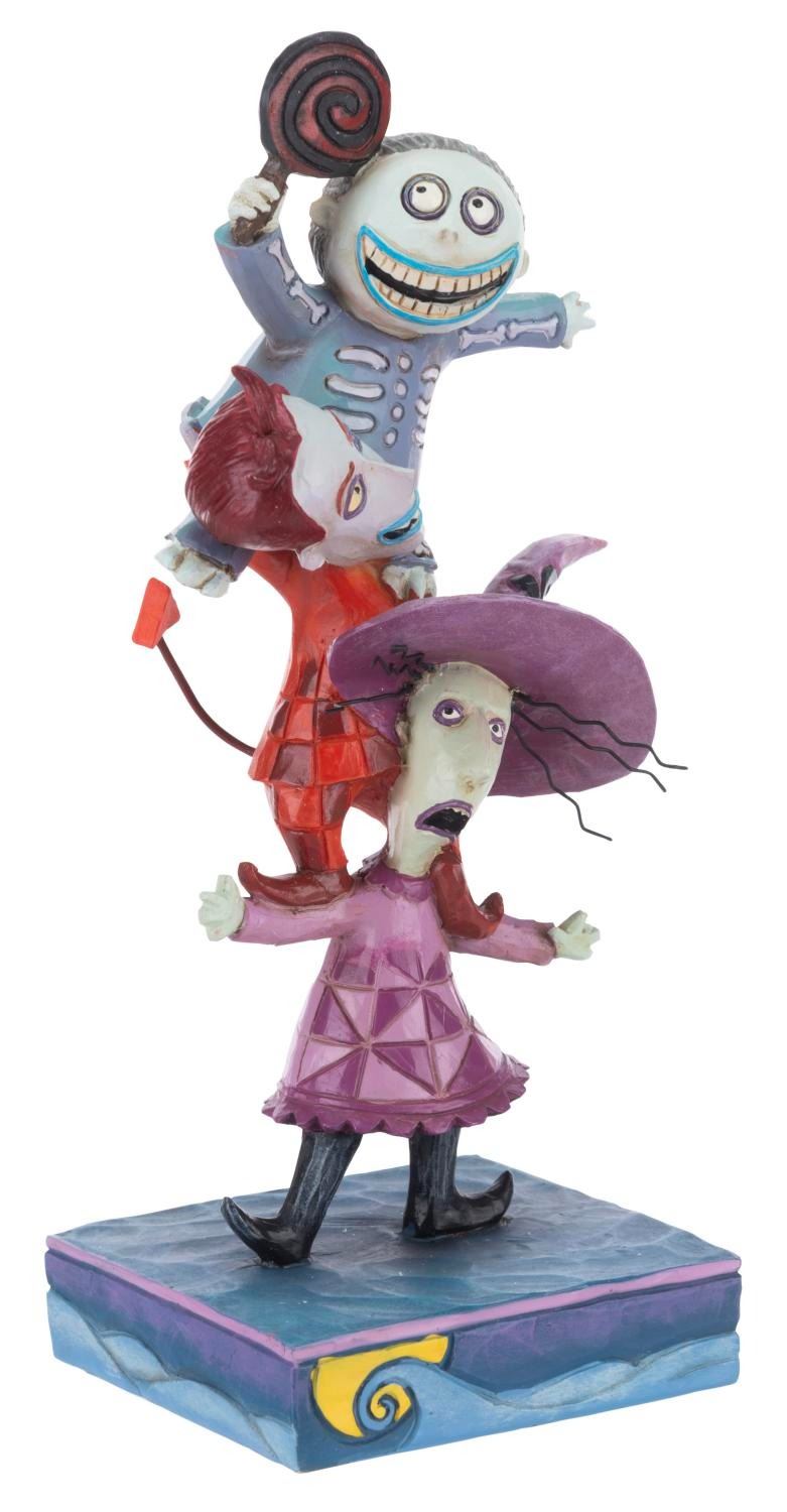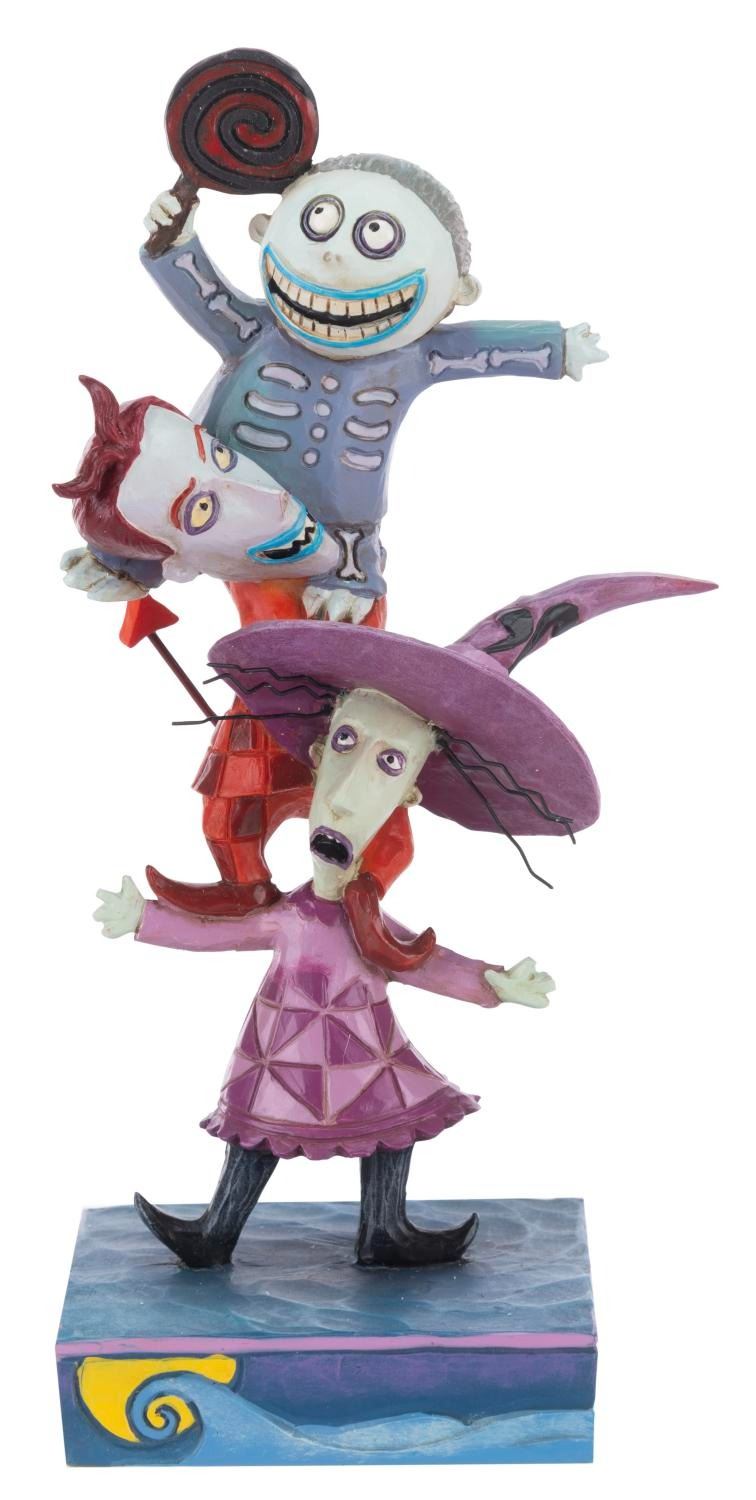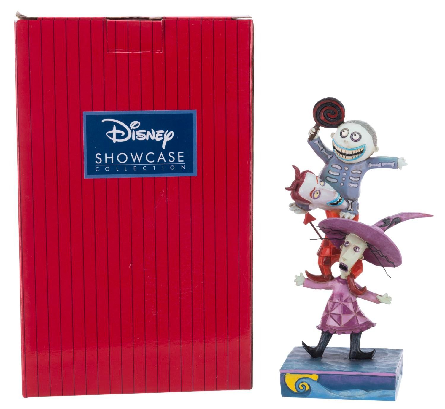 (Enesco, 2017) A Disney Traditions "Triple Trouble" figurine featuring Lock, Shock and Barrel from "The Nightmare Before Christmas" designed by Jim Shore. Measuring 2.5" x 3.25" x 5.75" tall, the figurine is in fine condition with original tags and comes with the original box.