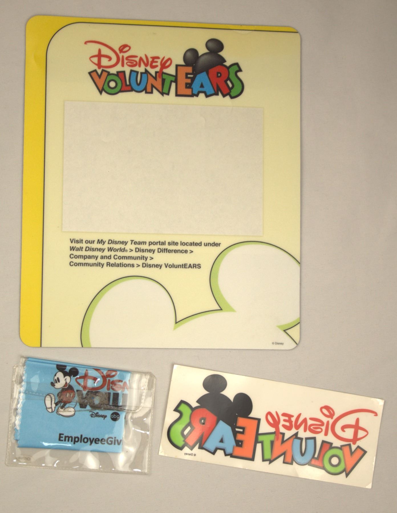 Disney Voluntears Photoframe mouse pad, Window sticker and screen cleaner. All are in great condition.