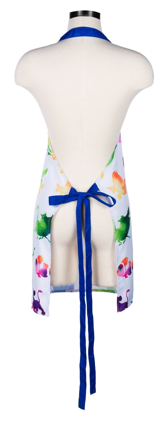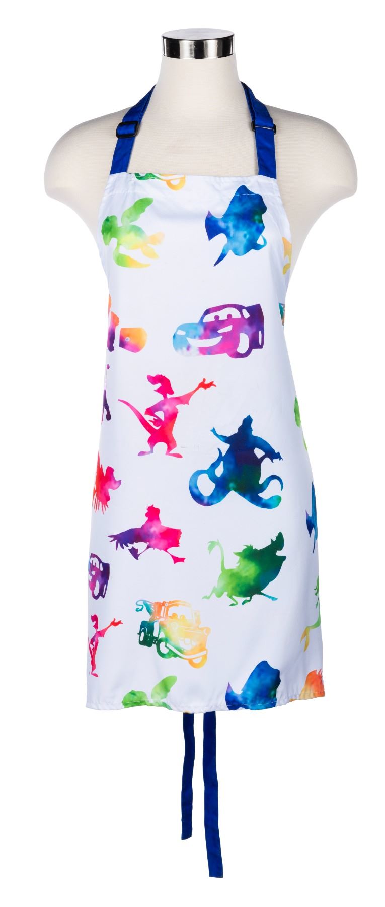 (Disney's Art of Animation, 2021) An apron worn by Food Division Hosts and Hostesses of Disney's Art of Animation. Character silhouettes on the apron include Mater, Dory, Timon, and Ursula. Measuring 27" x 28.5" and "one size fits all," the apron is in fair condition, with some slight stains from use.