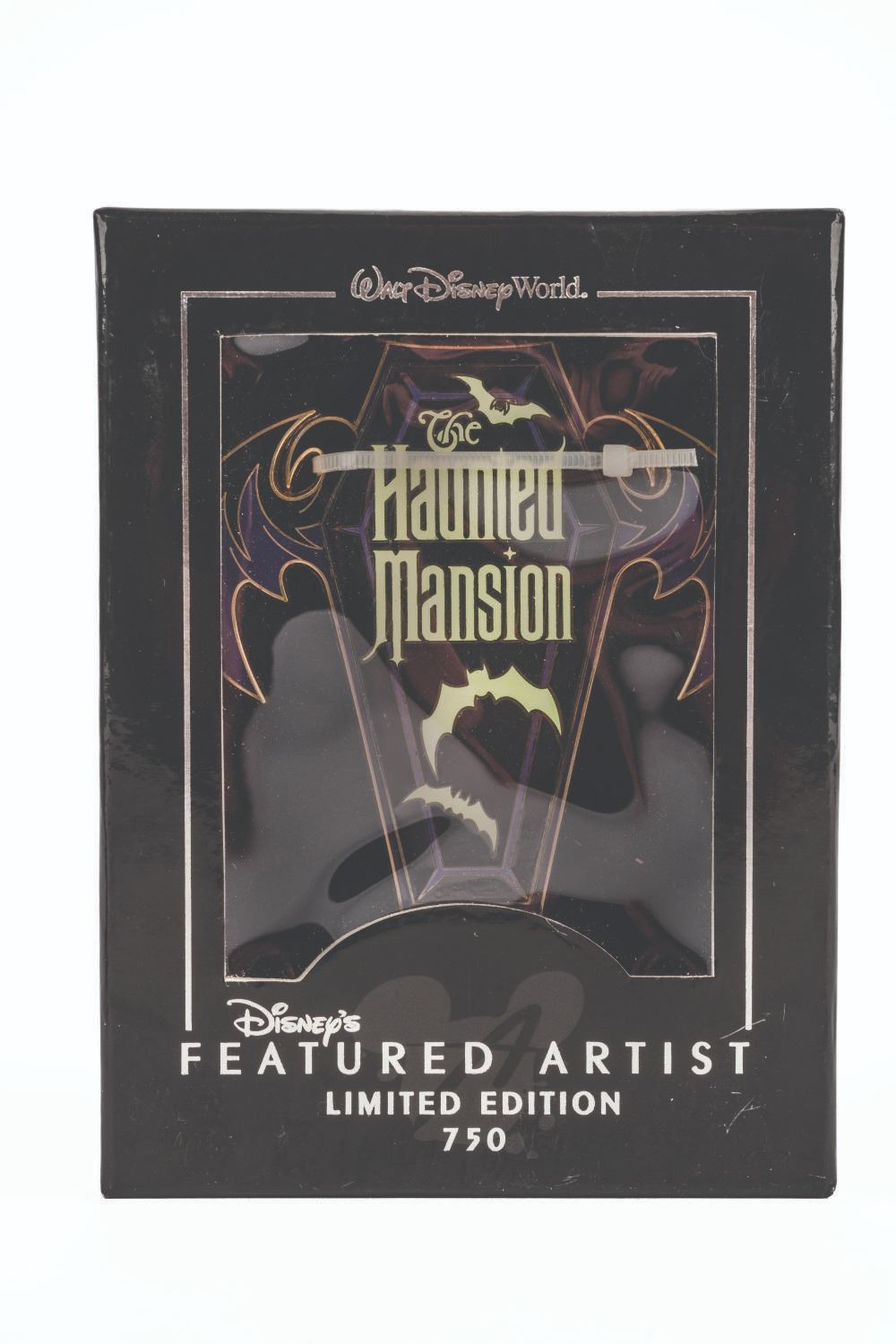 (Walt Disney World, 2006) A Disney’s Featured Artist Haunted Mansion pin titled “We’re Dying to Meet You,” featuring the Mansion’s Hostess. The jumbo-hinged pin was released in a limited edition of 750 and is in fine condition with the original box.