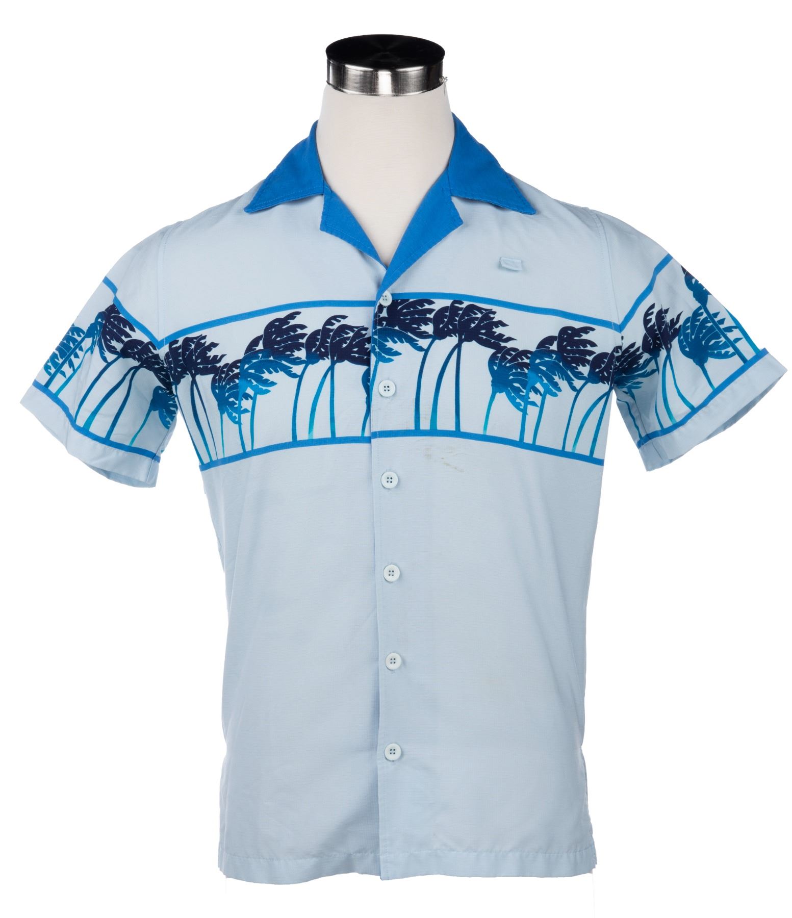 (Disney’s Typhoon Lagoon, 1990s-2000s) A shirt worn by Merchandise Hosts and Hostesses of Disney’s Typhoon Lagoon at Walt Disney World. Measuring a male size S, the shirt displays in good condition with stains and spots of discoloration from Resort use.