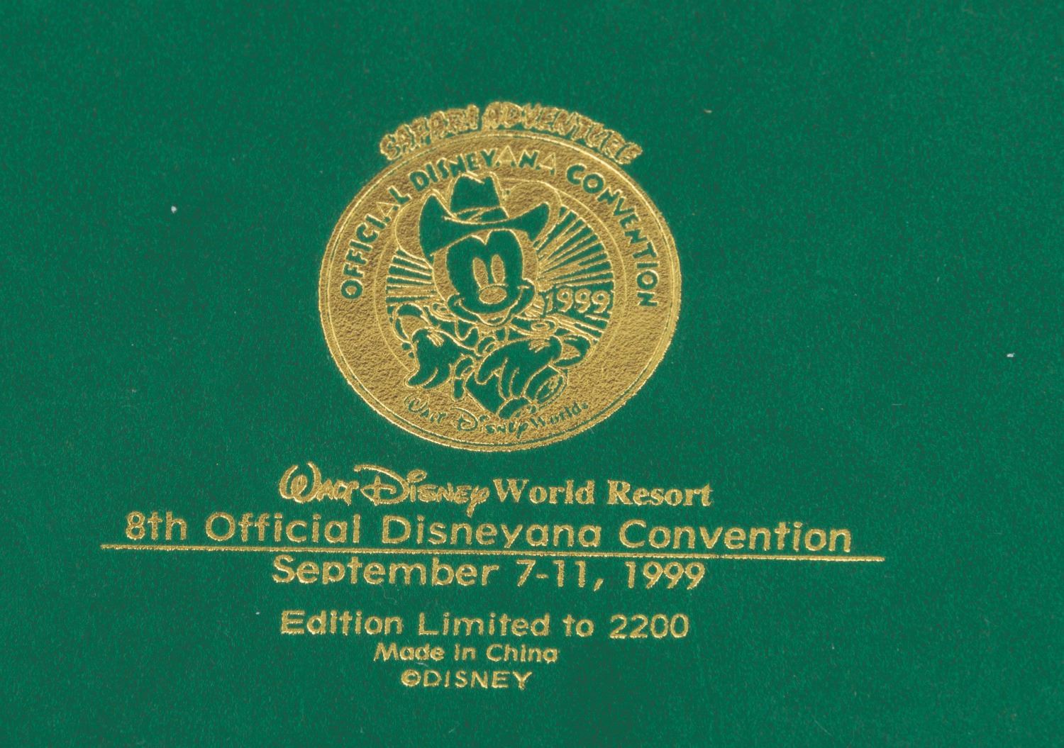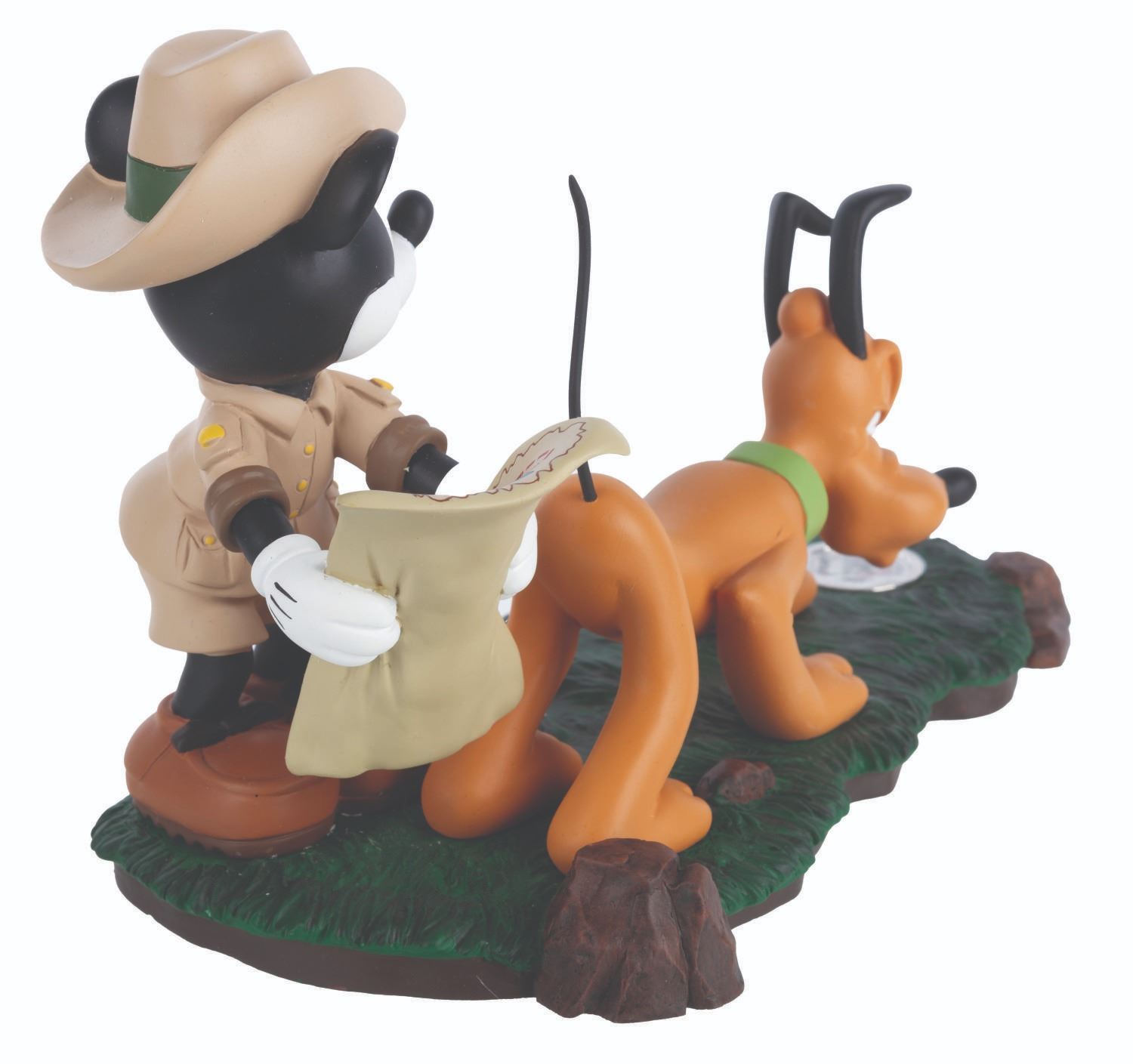 (Disneyana, 1999) A Mickey Mouse and Pluto ceramic figure titled “Safari Adventure” from the 8th Disneyana Convention, held September 7-11, 1999. Limited to an edition of 2200, the figure depicts Mickey with a map as Pluto sniffs around and features the convention’s logo in a 1” in diameter compass. Measuring 6” x 9”, the figure comes with its original box and is in very good condition with light wear and some paint smudges on Mickey’s face.