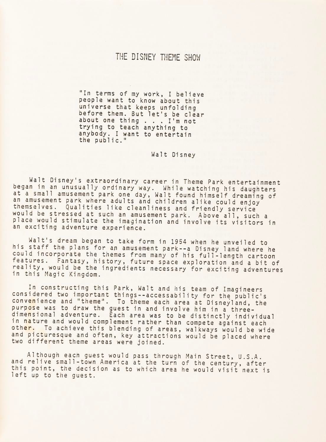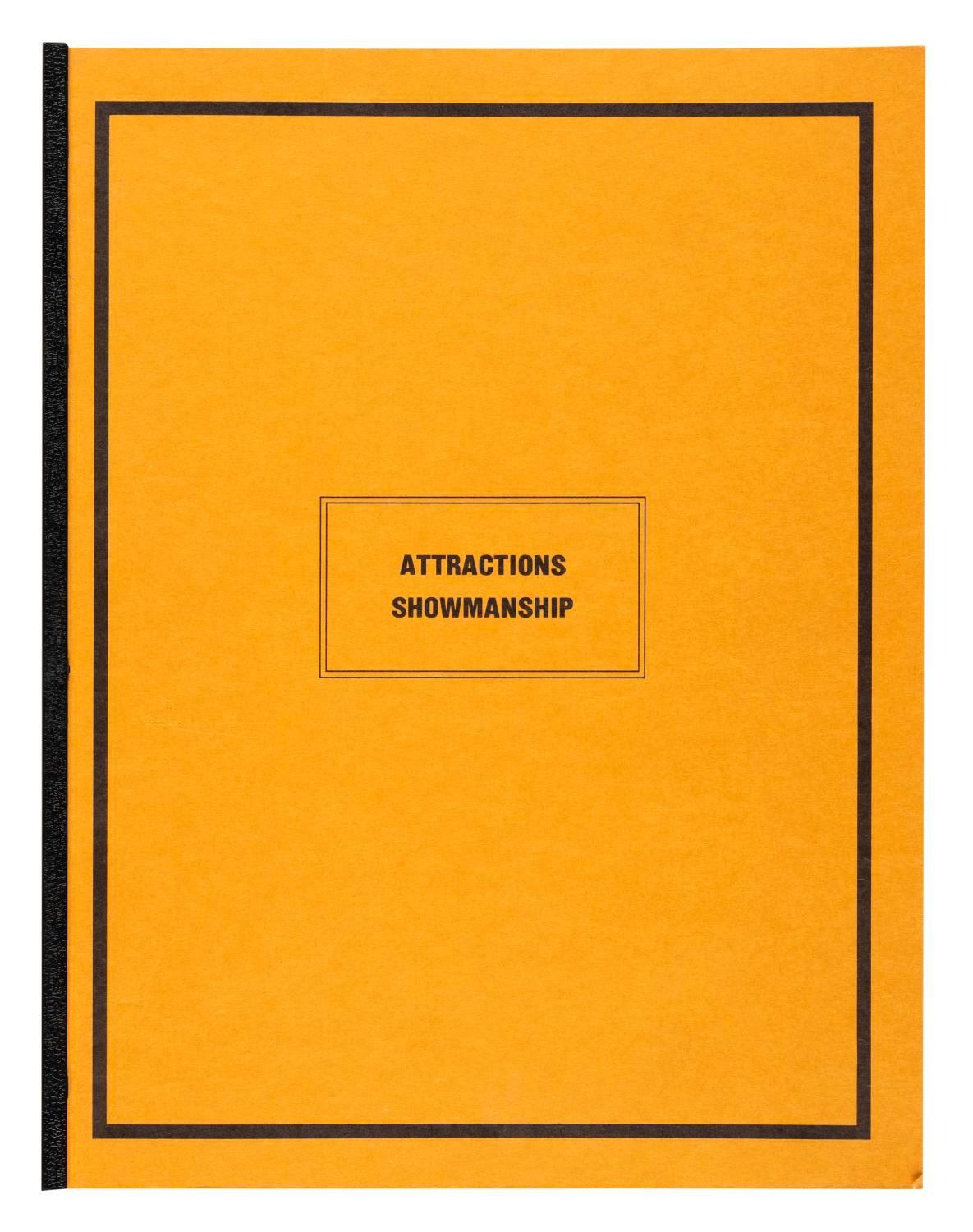 (Disneyland, 1970s) A 45-page attractions showmanship manual for Cast Members. Measuring 8.5" x 11", the manual is in very good condition with light wear and discoloration from age.