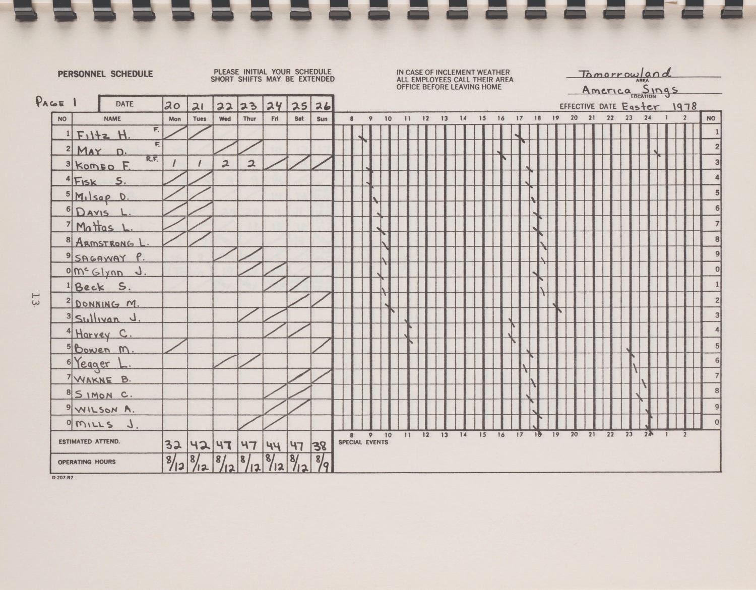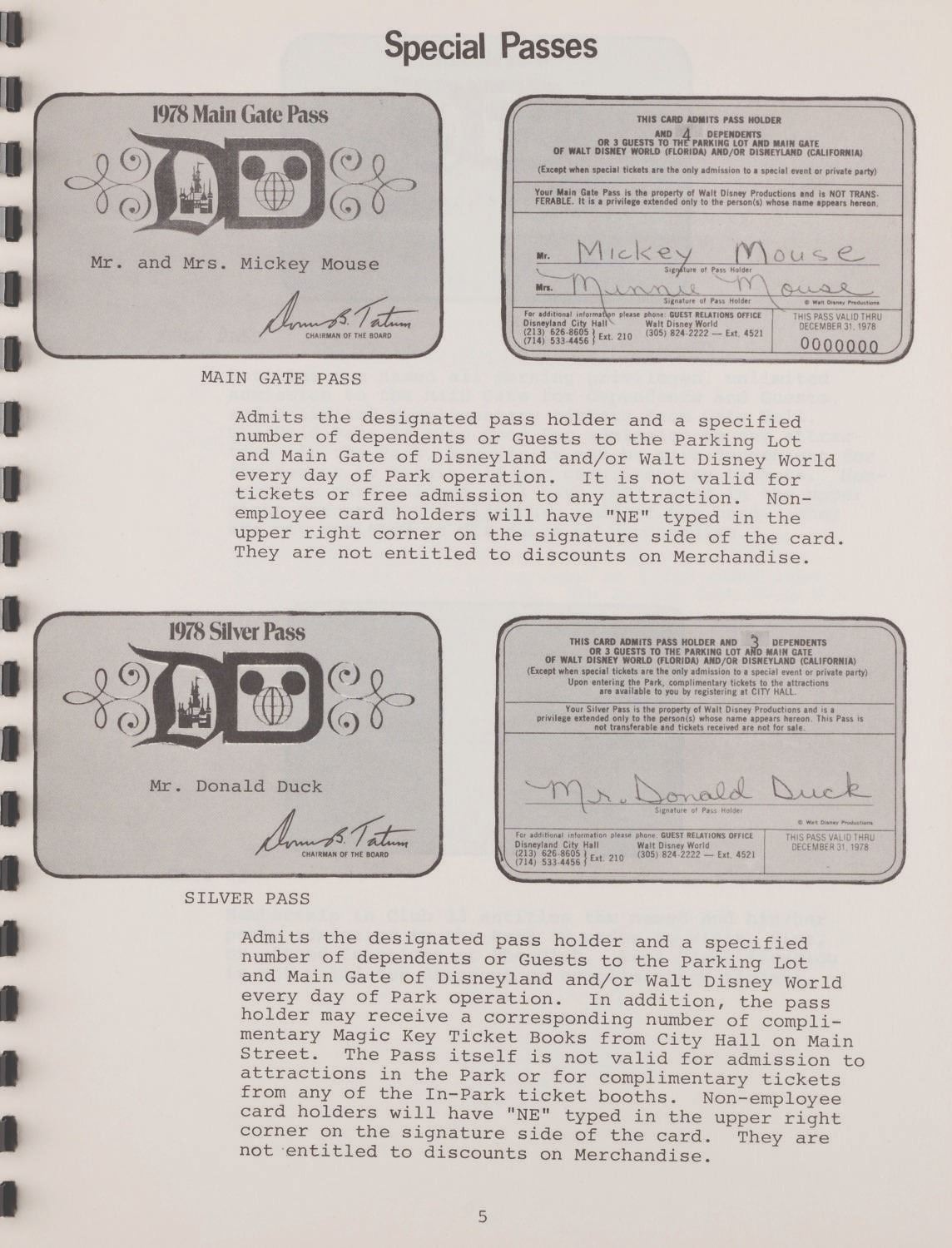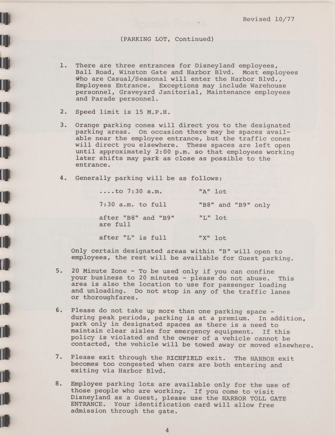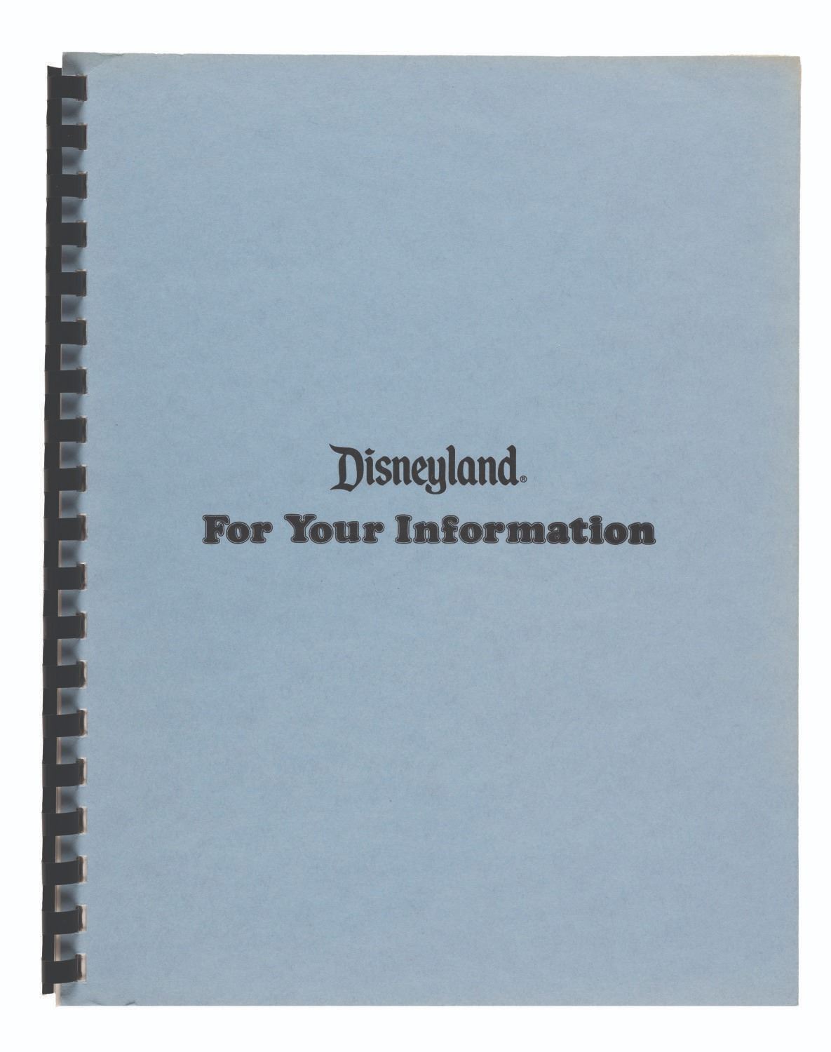(Disneyland, 1977) A Disneyland "For Your Information" book provided to new Cast Members of Disneyland. Measuring 8.75"x11", the spiral-bound book is in very good condition exhibiting light wear.