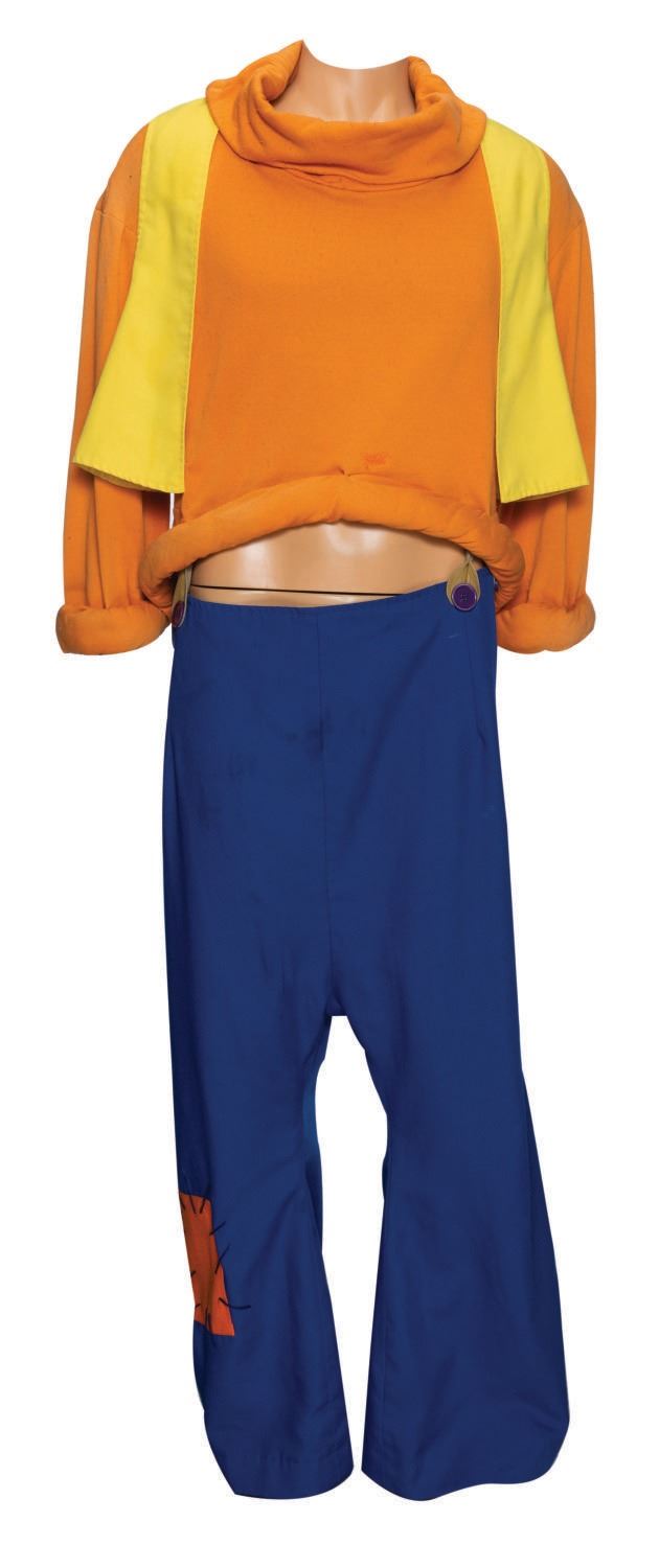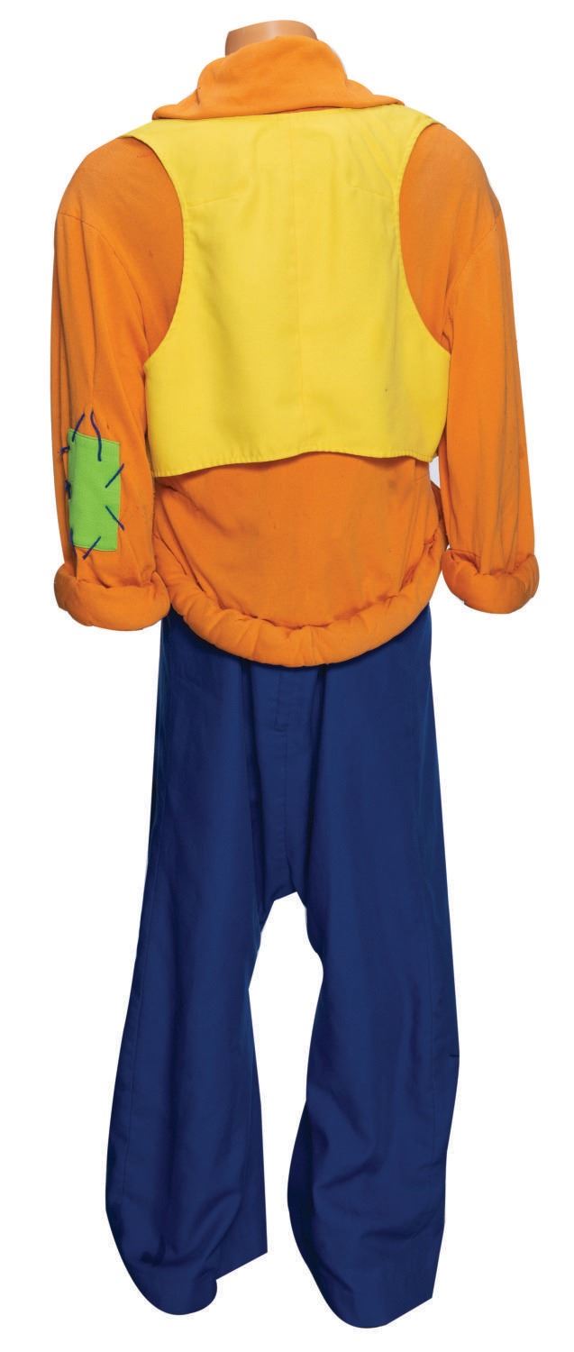 (Disneyland, 1970s-80s) A Goofy Character Costume from Disneyland. This original Goofy Character costume was created for use by Cast Members of Disneyland. The Character often appeared in Town Square and Fantasyland areas during the 1960s to 1970s. Measuring various sizes, the shirt, vest, and pants are in very good condition with wear from park-use, handling, and age, and retaining local manufacturer's labels.