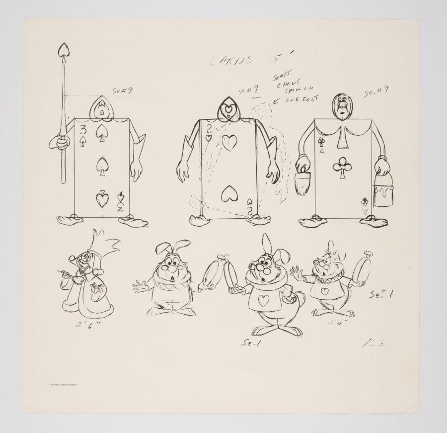 (Disneyland Hotel, 2000s) A high-quality print of concept artwork from “Alice in Wonderland.” The print featuring the White Rabbit, King of Hearts, and the Card Guards was displayed as decor at the Disneyland Hotel. Measuring 15.5” x 15.5”, the print is in fine condition with slight edge and corner wear.