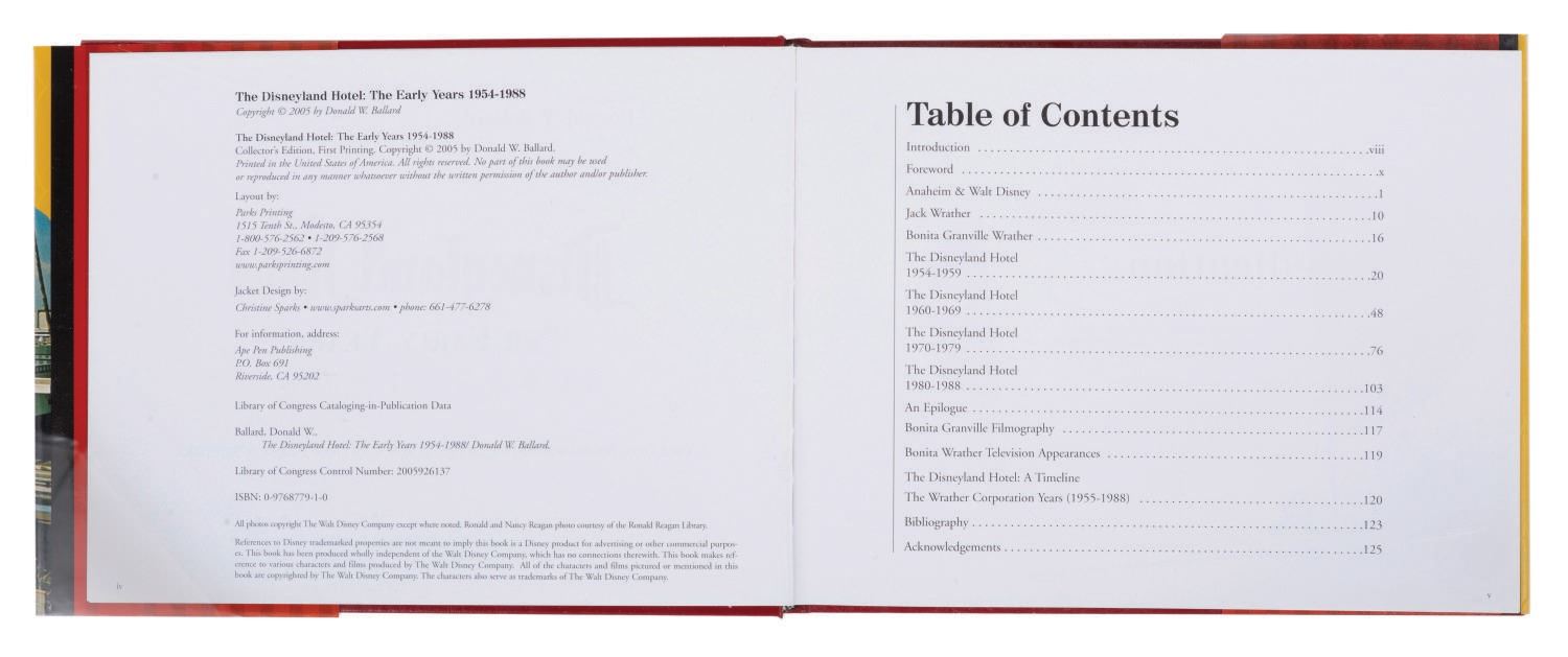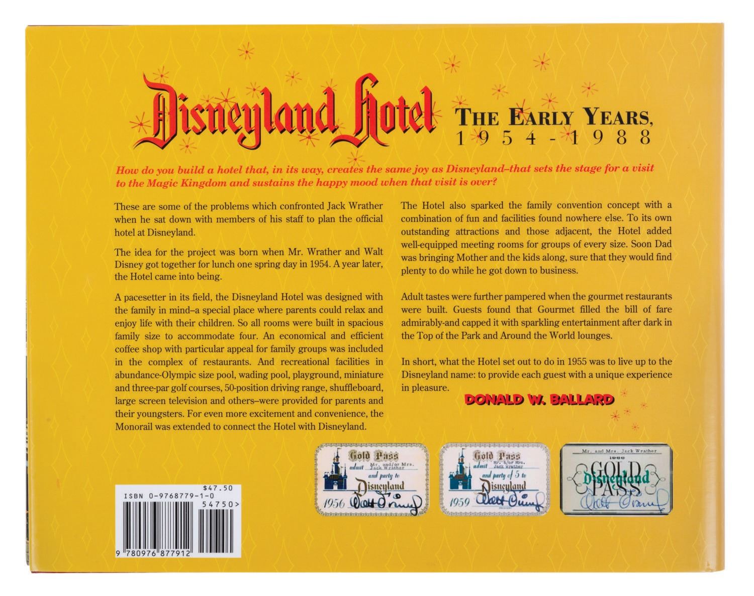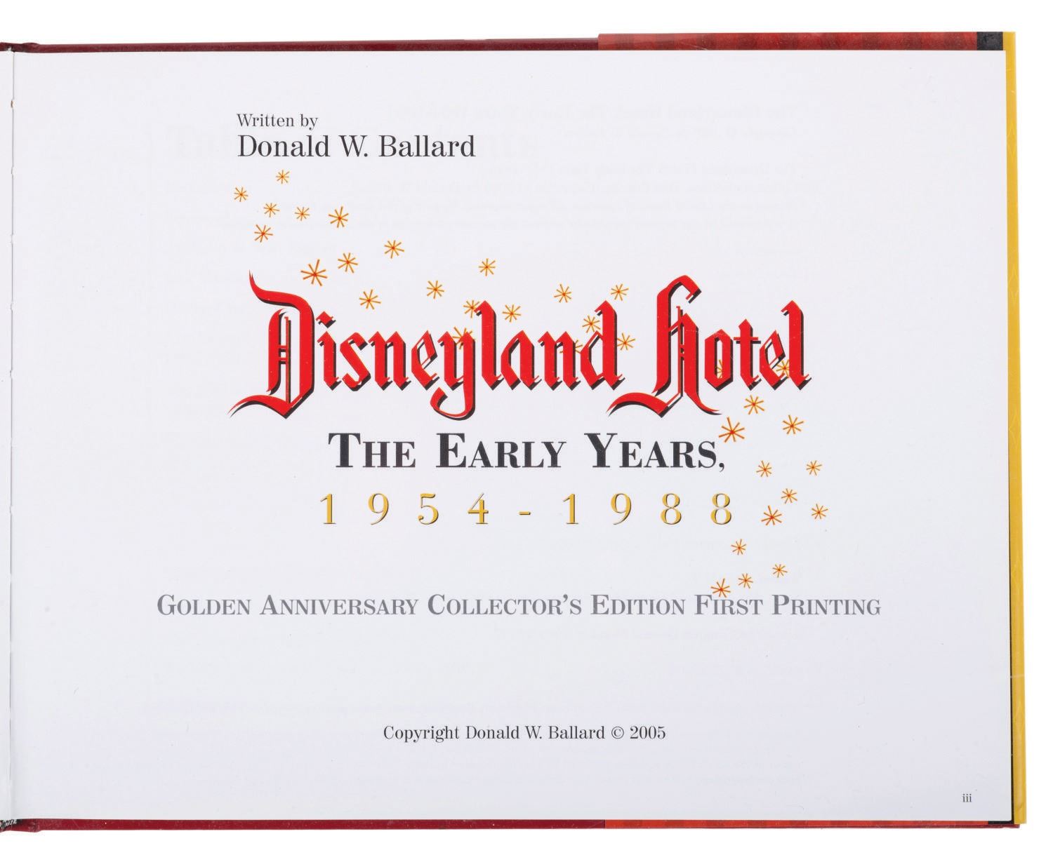 (Ballard, 2005) Disneyland Hotel The Early Years, 1954-1988, by Donald Ballard. This extremely rare self-published hardcover book is the most extensive resource on the classic Disneyland Hotel. Measuring 8.75"x11.25", the book and dust jacket are in fine condition.