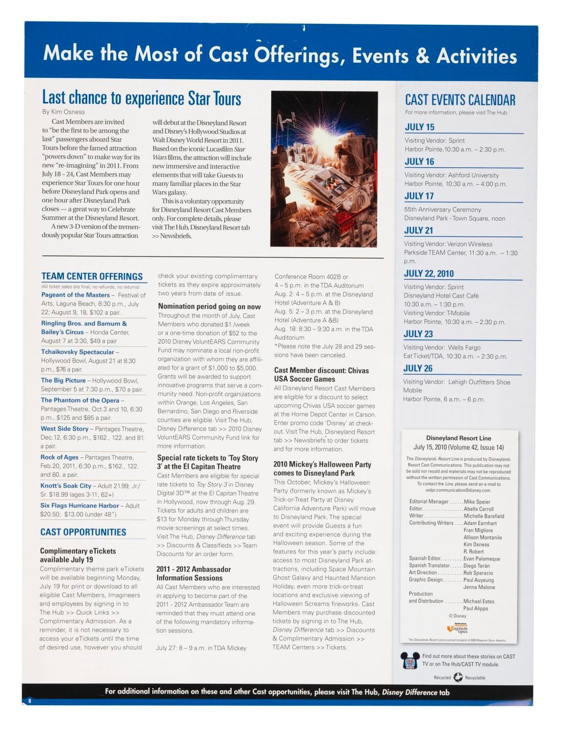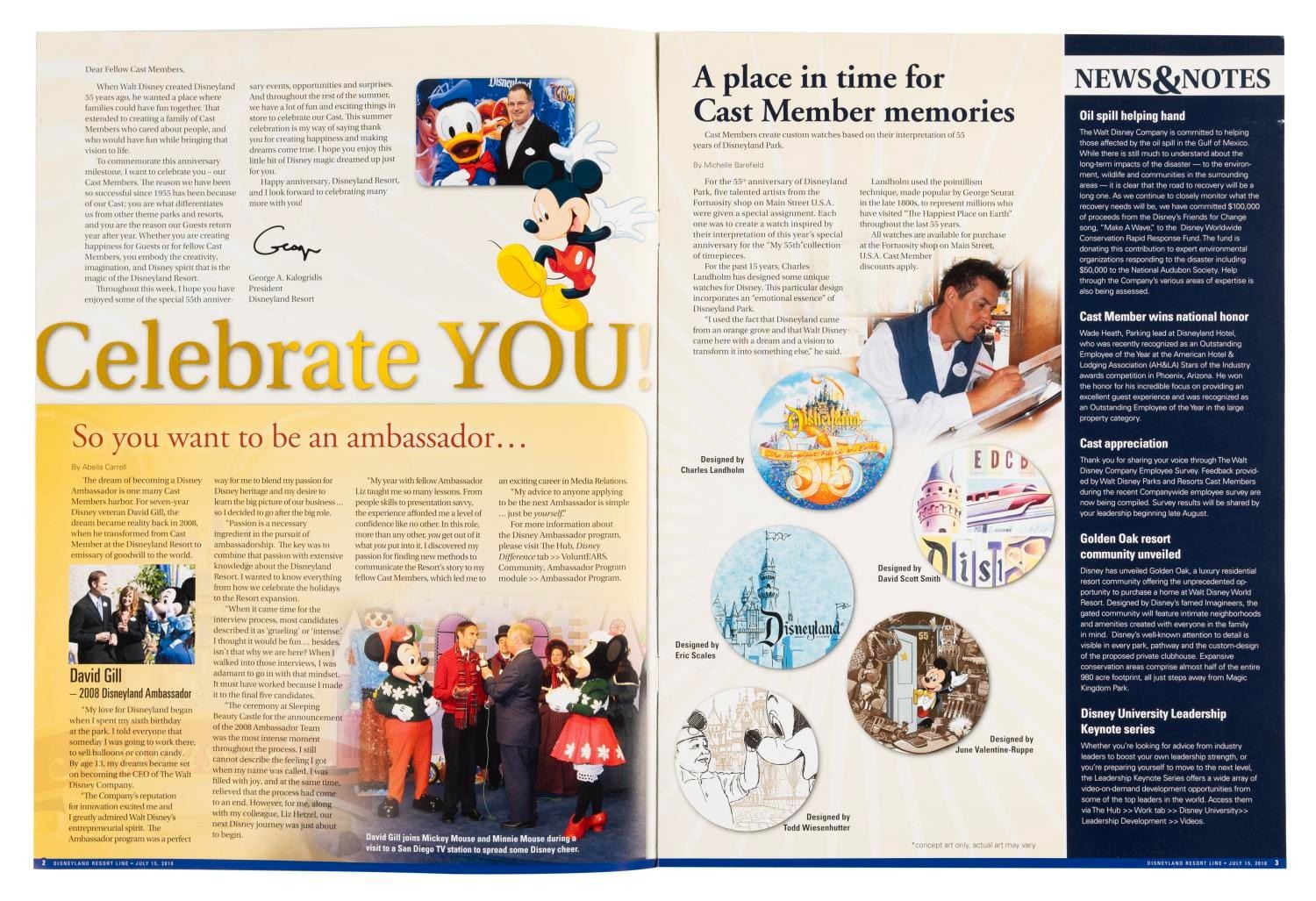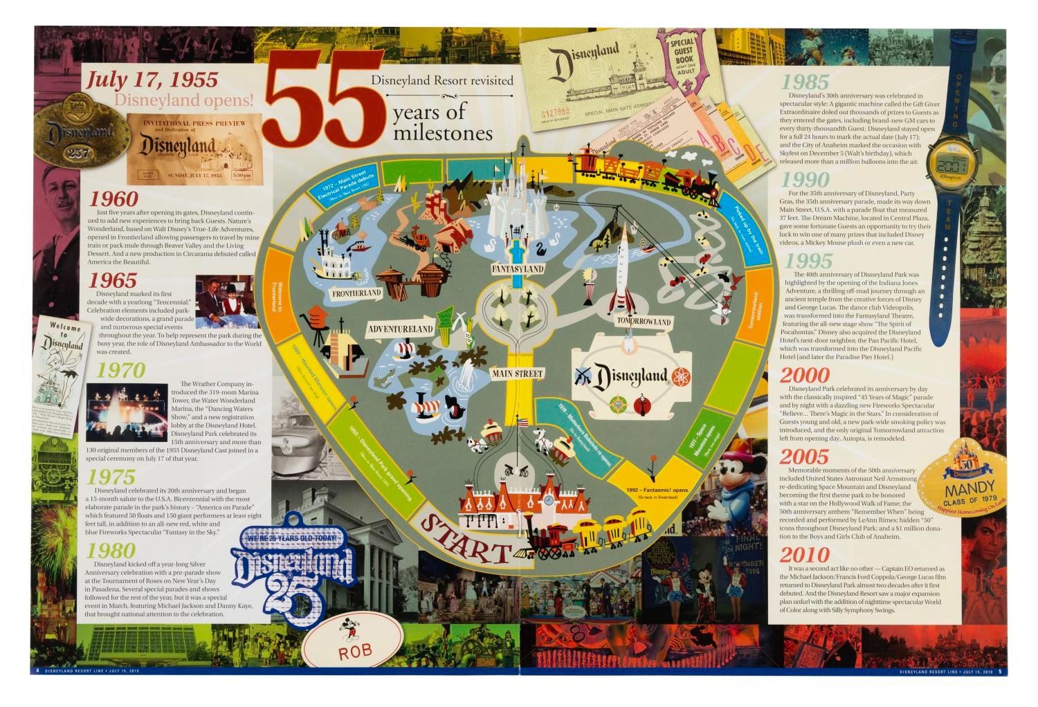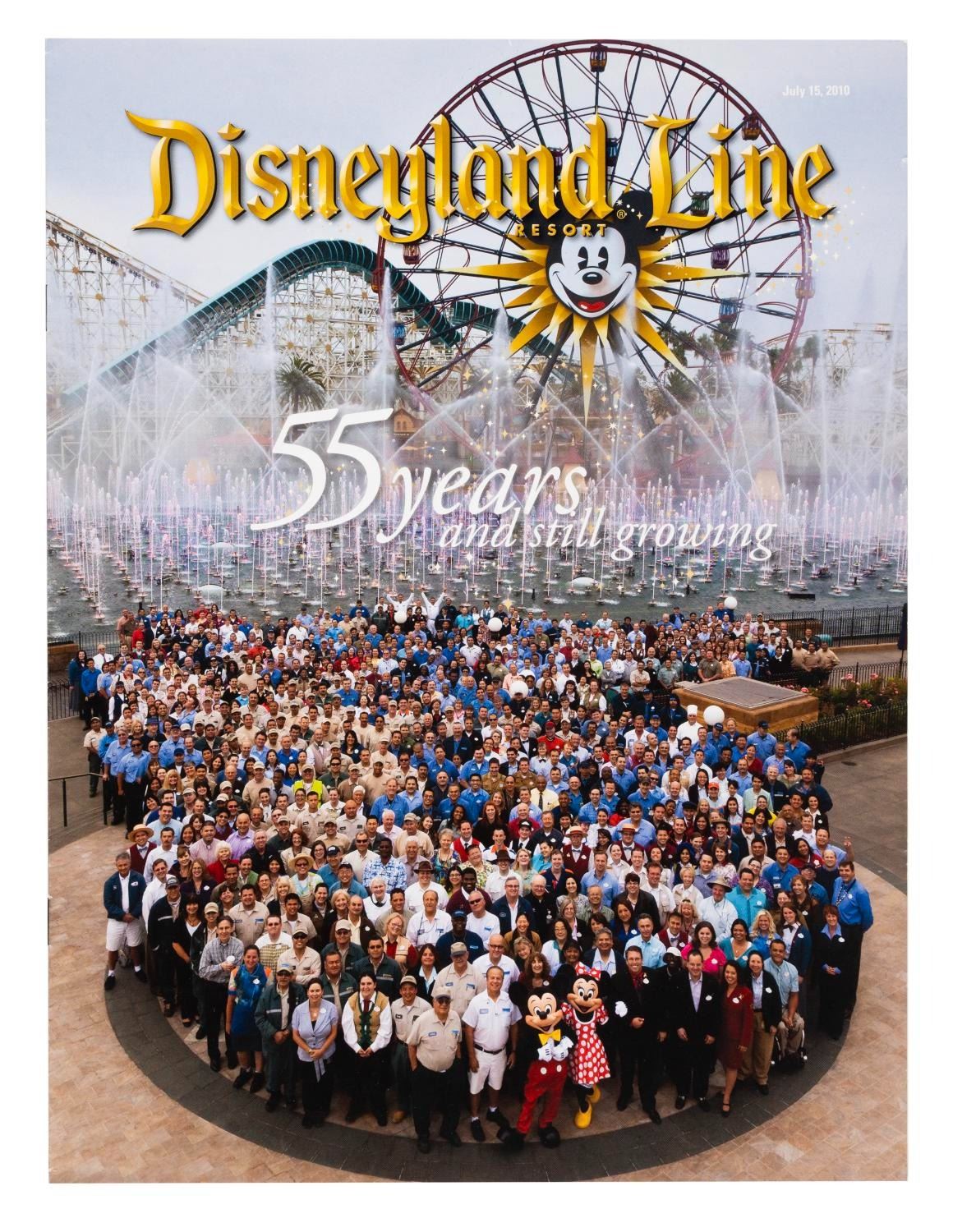 (Disneyland, 2010) A July 15, 2010 issue of Disneyland Line magazine celebrating the Resort’s 55th anniversary. Measuring 9” x 12”, the anniversary issue is in very good condition with light wear.