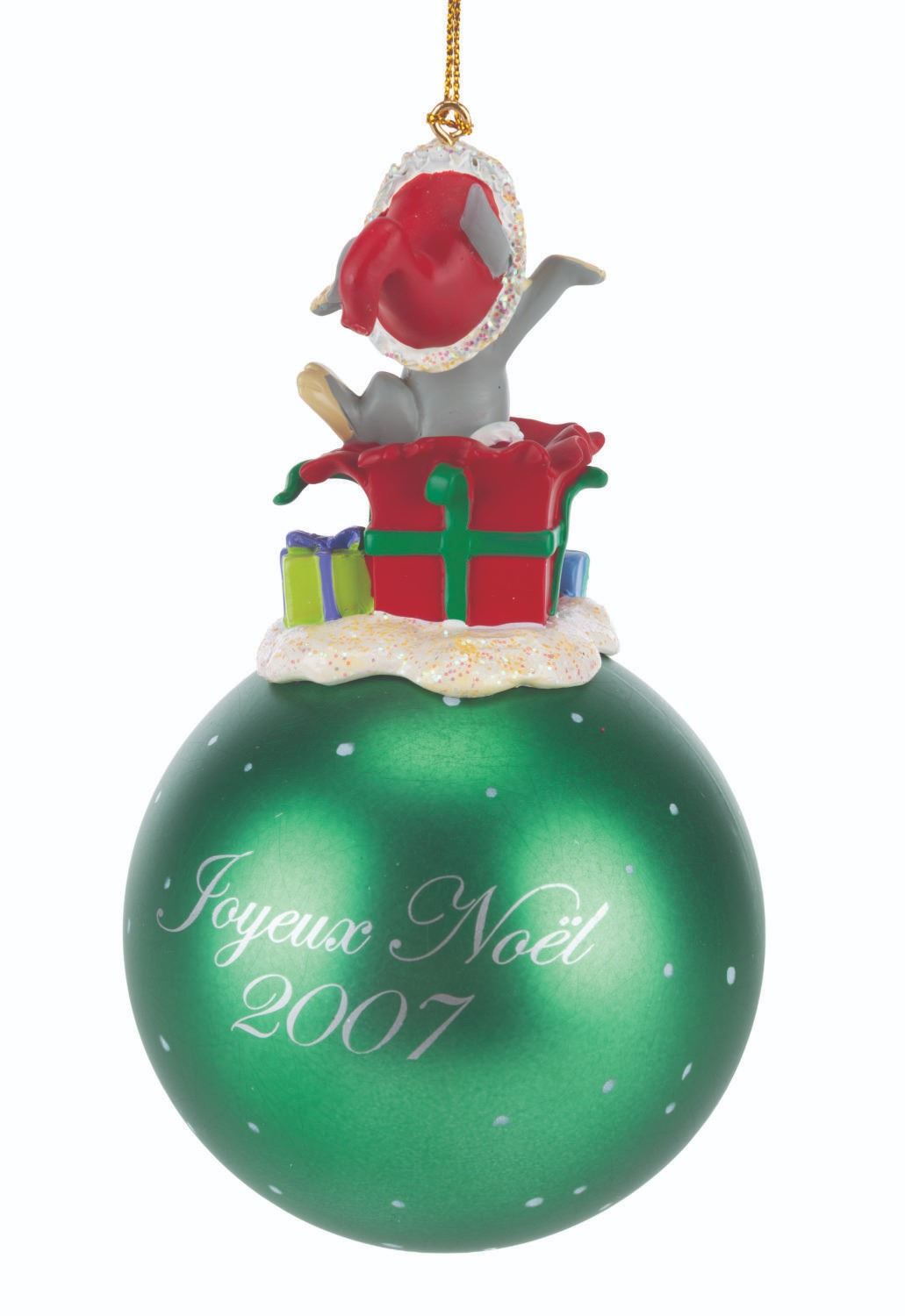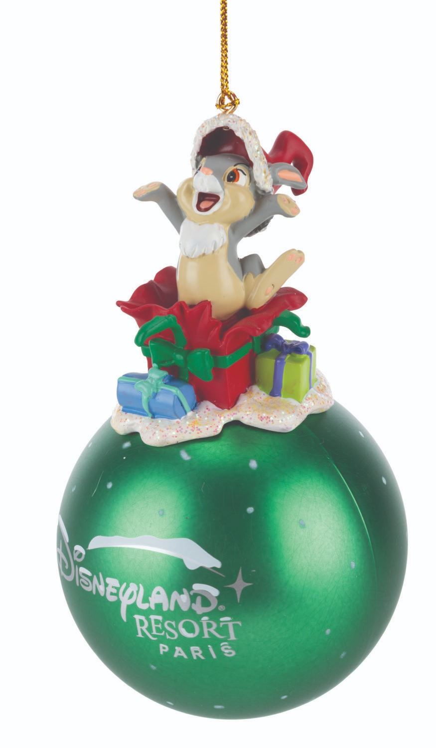 (Disneyland Paris, 2007) An ornament of Thumper on top of a Disneyland Paris orb. Measuring 3" diameter x 5.5" tall, the ornament is in fine condition with the original box.
