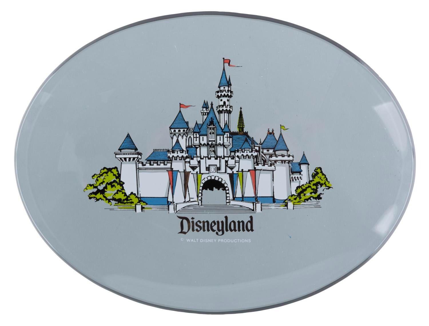 (Houze Art, 1960s-70s) A souvenir glass plate featuring Sleeping Beauty Castle. Measuring 6.25” x 8.25” and .75" thick, the plate is in very good condition with light scratches, mainly to the reverse.