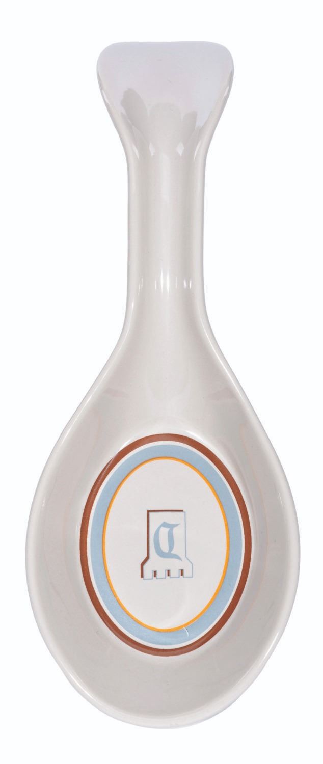 (Disneyland, 1980s-90s) A spoon rest featuring a two-color Disneyland Castle graphic, originally part of larger set of dishware. Measuring 3.25” x 9” x 1.5” deep, the spoon rest is in very good condition with a light scratch on the blue band of the inner graphic.