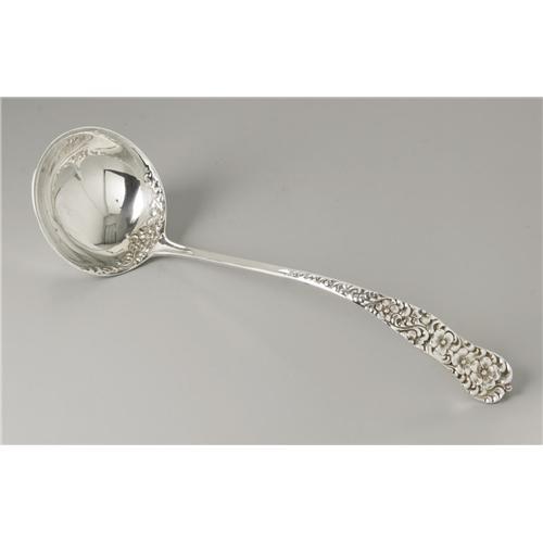 <B>An American Silver Ladle</B></I><BR><B>Dominick & Haff, New York, NY, 1888</B></I><BR><BR>The 'Rococo' pattern soup ladle, retailed by Tilden, Thurber & Co., hallmark to the reverse <I>STERLING</B></I><BR>13.2in. long