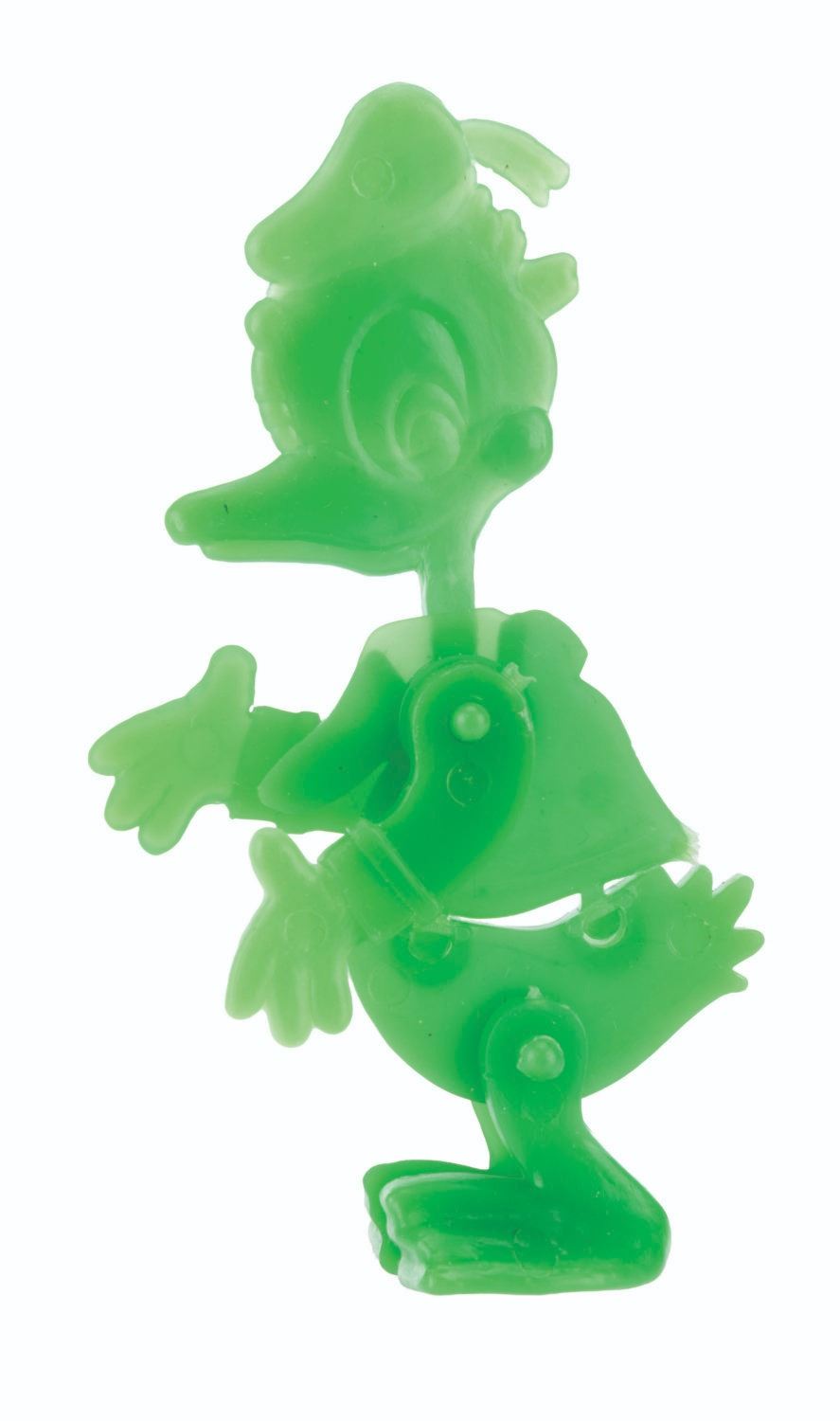 (Marx, 1961) A Disney Snap-Eeze Donald Duck jointed plastic figure. Measuring 3.5" tall, Donald is in very good condition with light handling wear.