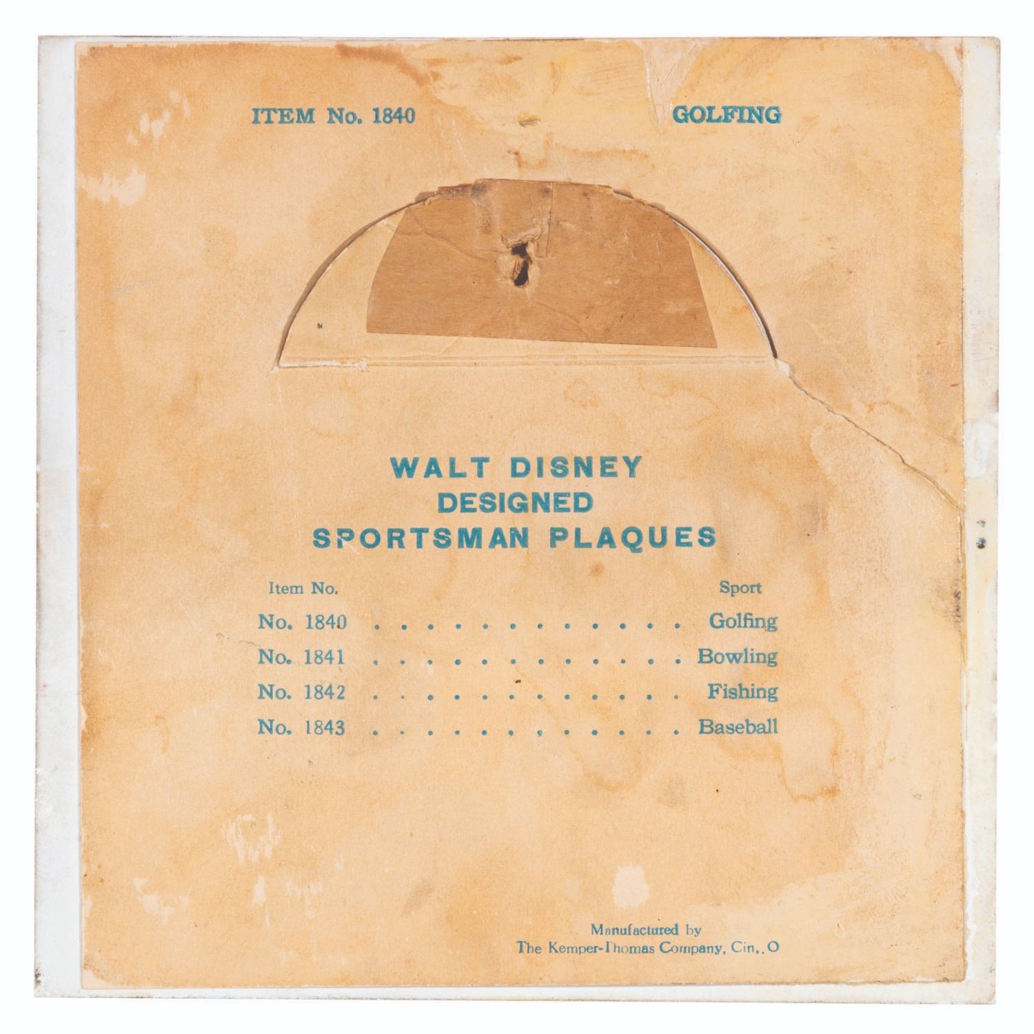 (The Kemper-Thomas Company, 1940s-50s) A thermometer tile featuring Donald Duck and a quote about golf, manufactured by The Kemper-Thomas Company of Ohio. Measuring 6.25" x 6.25", the ceramic tile displays in very good condition with light stains, fading to the lettering, oxidation, and wear.