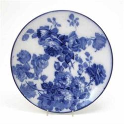 A Doulton Burslem earthenware wall plate, printed with 'Gloire-de-Dijon' pattern, a design of roses, in underglaze blue, 13.5in. £80-120