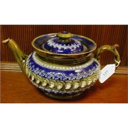 A Doulton Lambeth Tea Pot and Cover, decorated in enamel colours (a.f.)