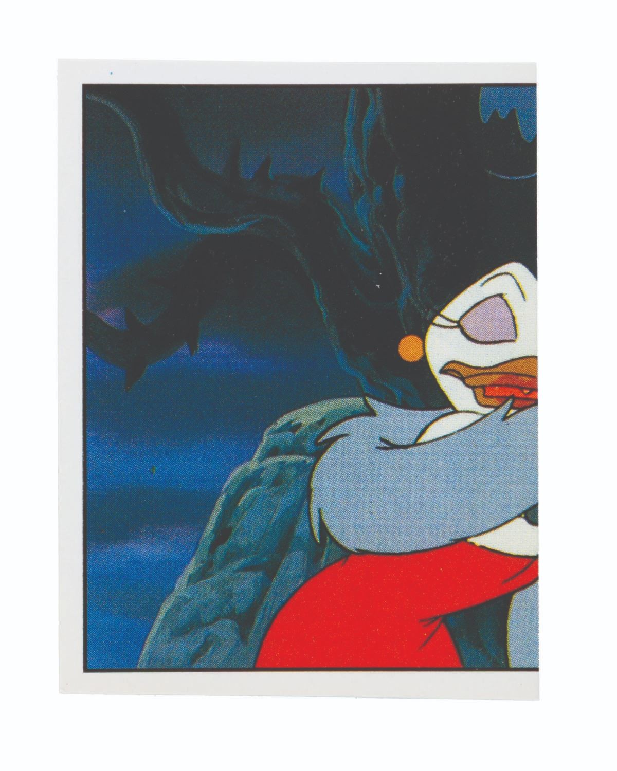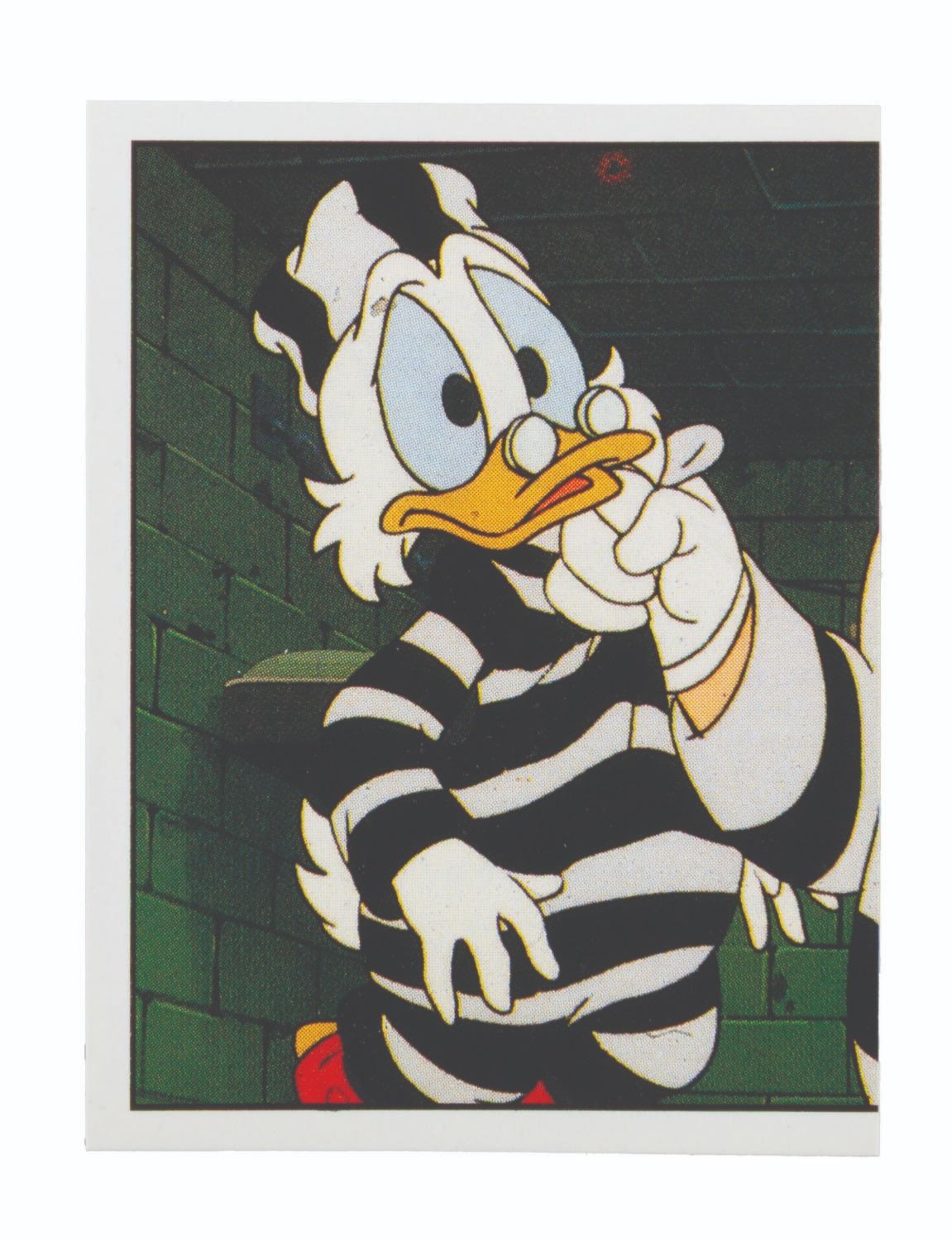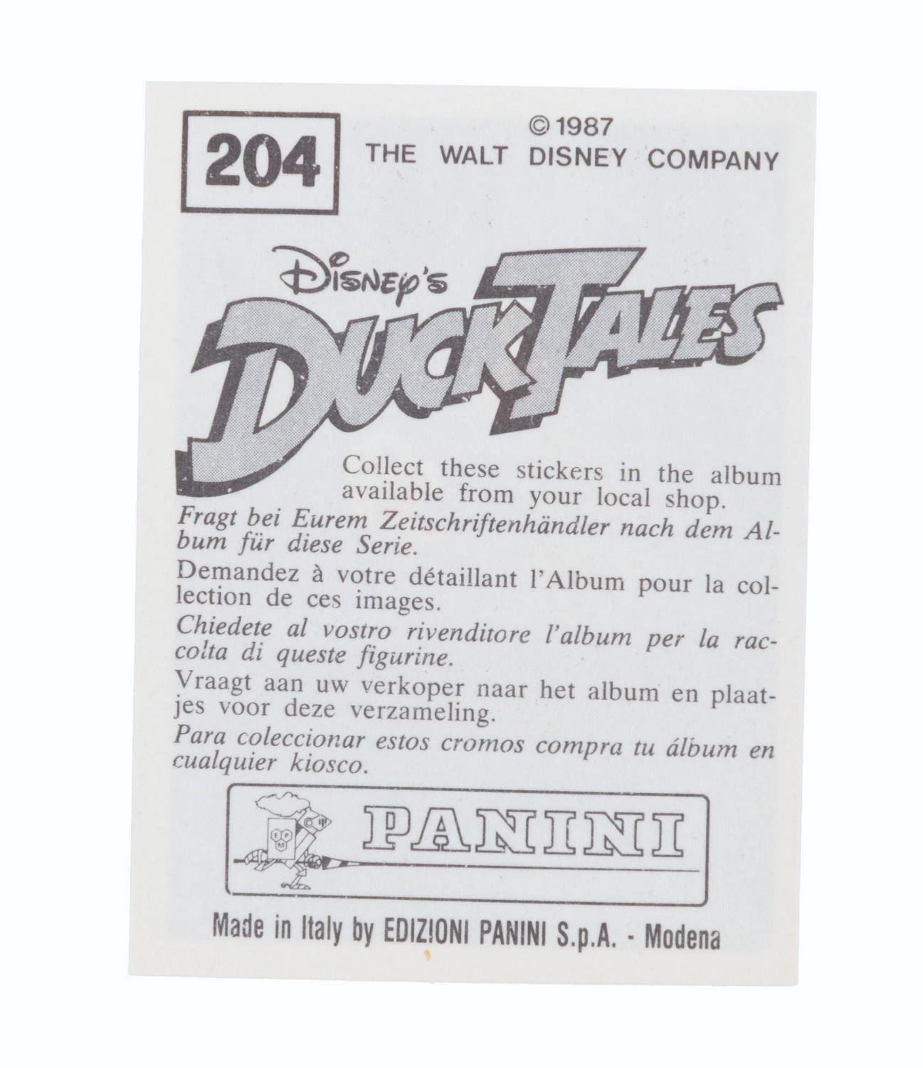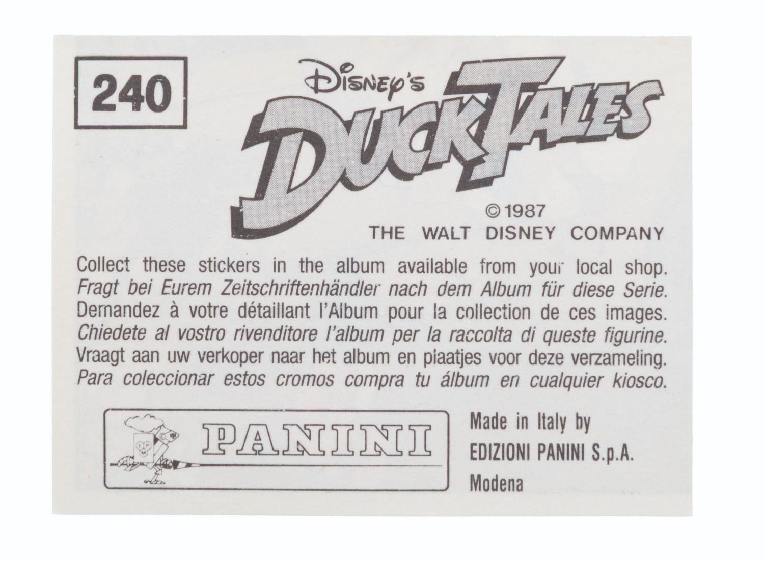 (Panini, 1987) A "DuckTales" Panini sticker book with 1200 stickers and the store display box. The stickers are confirmed to include at least one complete set of the 240 different stickers needed to fill the unused album. The stickers and album are in very good condition, with the box in good condition with tape and handling wear.