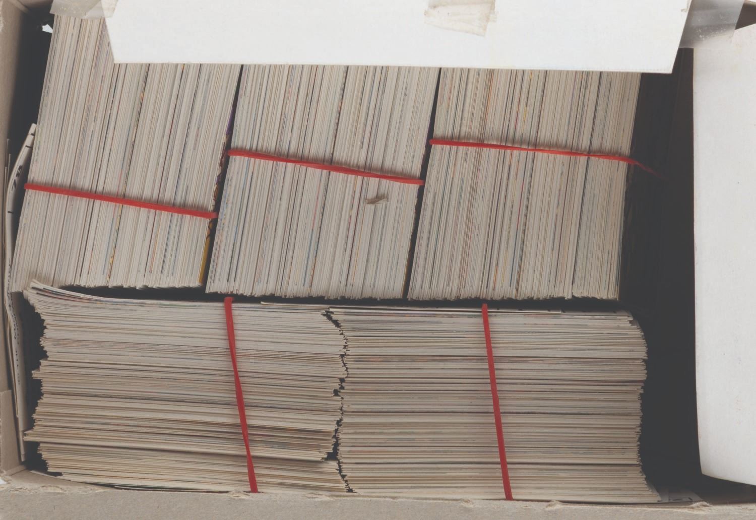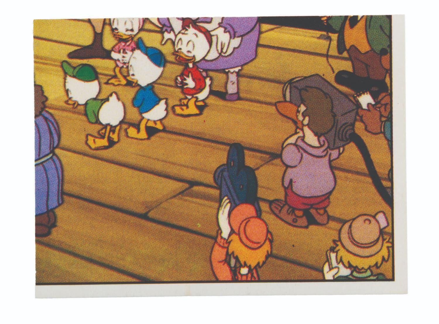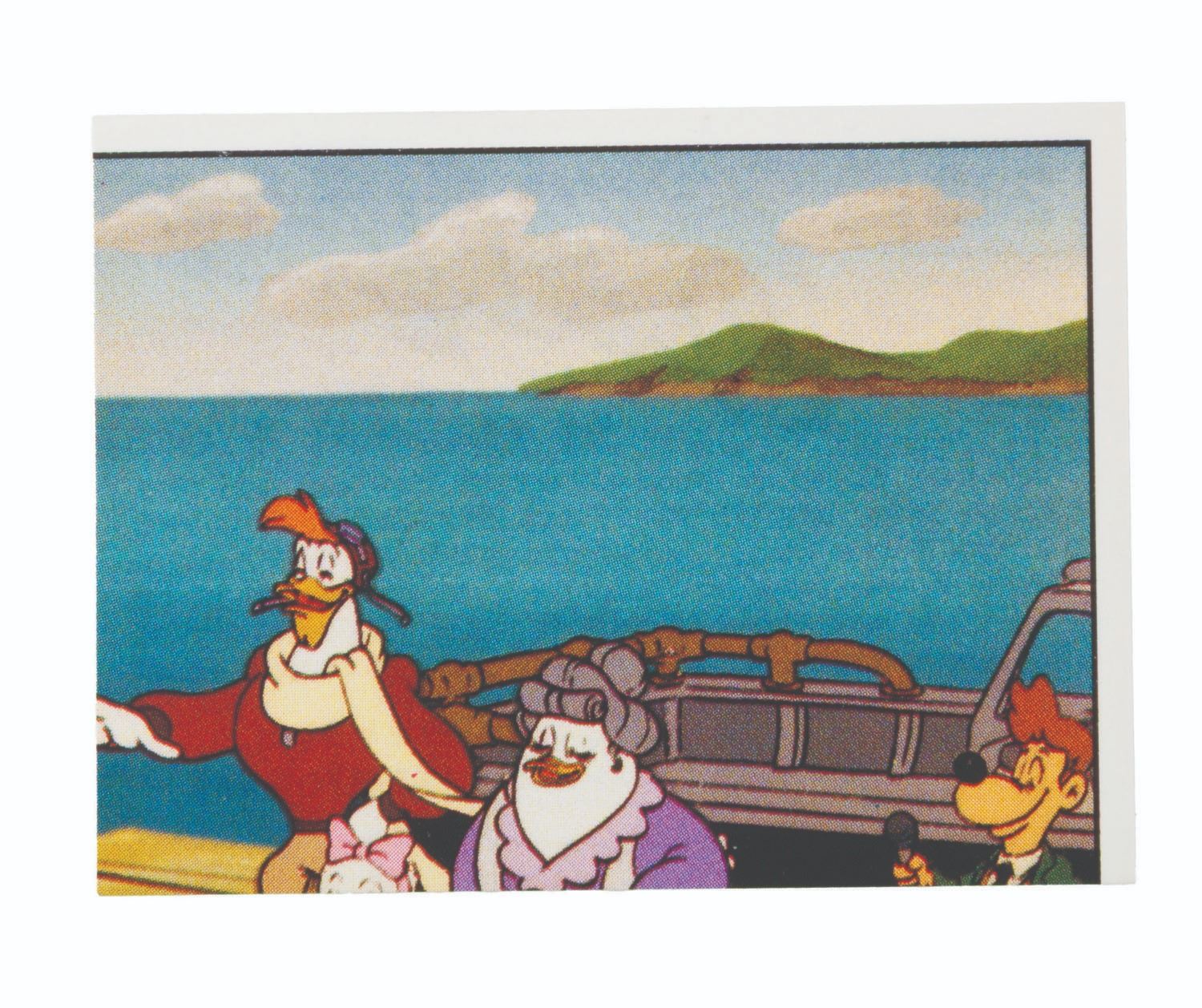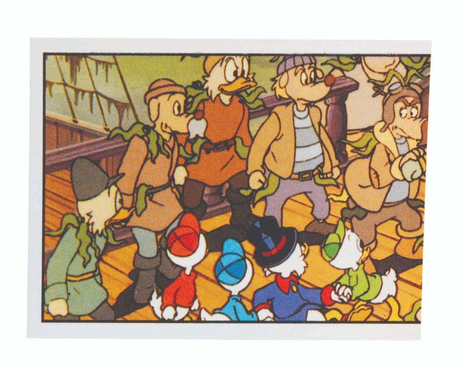 (Panini, 1987) A "DuckTales" Panini sticker book with 1200 stickers and the store display box. The stickers are confirmed to include at least one complete set of the 240 different stickers needed to fill the unused album. The stickers and album are in very good condition, with the box in good condition with tape and handling wear.