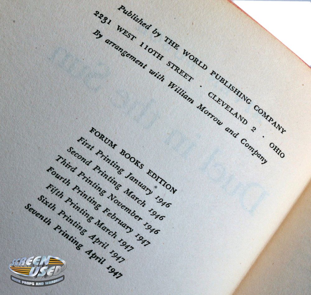 (Niven Busch, A Duel in the Sun, 1944, Seventh Edition, New York, Hampton Publishing Co.) This seventh printing of the book is signed by Charles Bickford (tipped), Joseph Cotten, Lillian Gish and Gregory Peck. The film version was released in 1946. Some wear on the dust jacket. Otherwise, in very good condition.