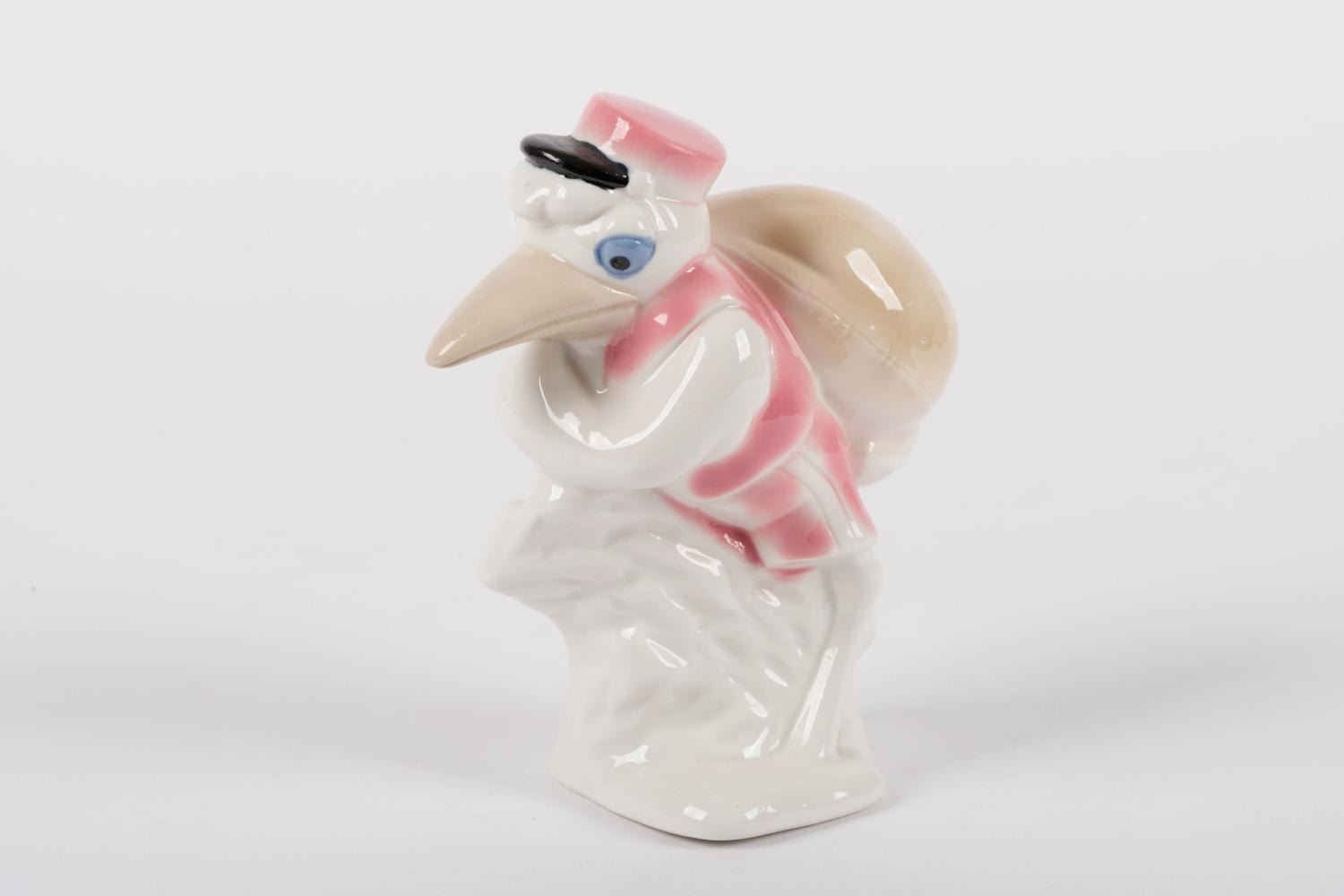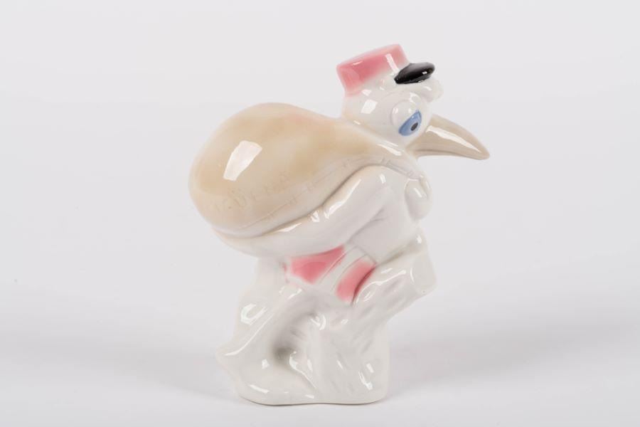 (Disney, 1950s-60s) A ceramic figurine of Mr. Stork from"Dumbo," stamped"Cigüena" (stork) and likely manufactured in Spain. Measuring 2.5" x 5" and 6" tall, the figurine is in very good condition with minimal wear from age.