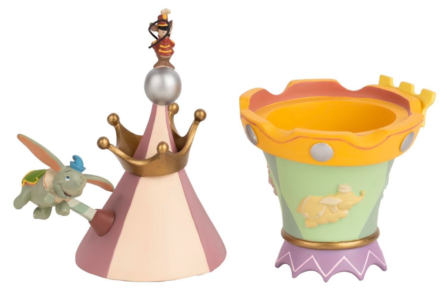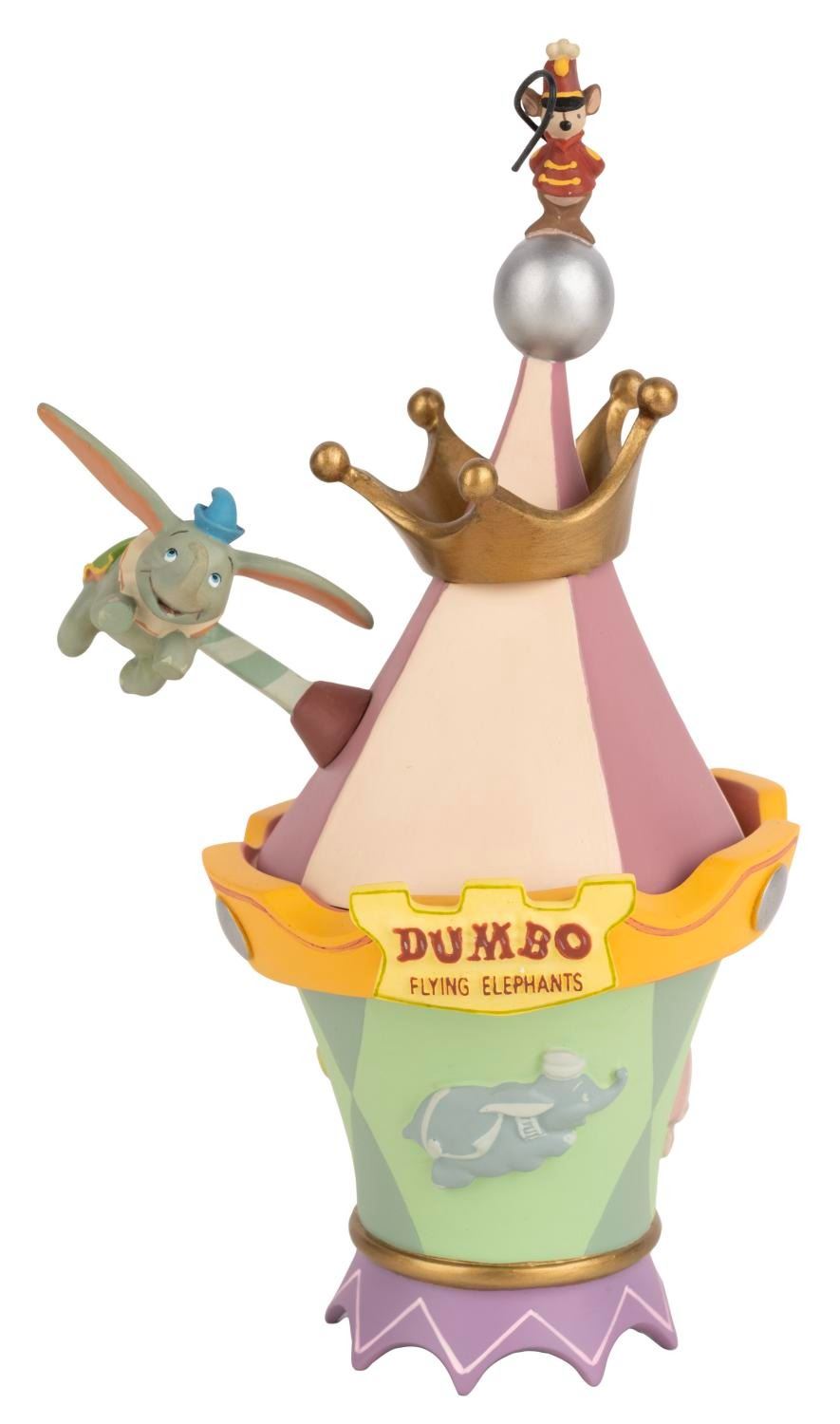 (Disneyland, 2005) A Dumbo the Flying Elephant trinket box designed and sculpted by Kevin Kidney for the Park's 50th anniversary. Numbered 0082 in an edition of 1955 and measuring 4" x 3.25" and 7.25" tall, the trinket box is in fine condition with minor wear to the bottom from display.
