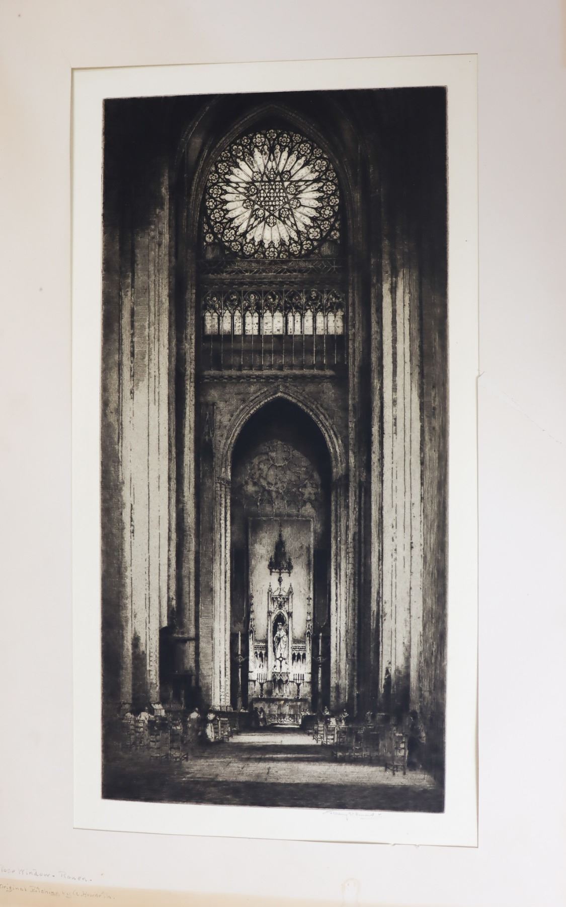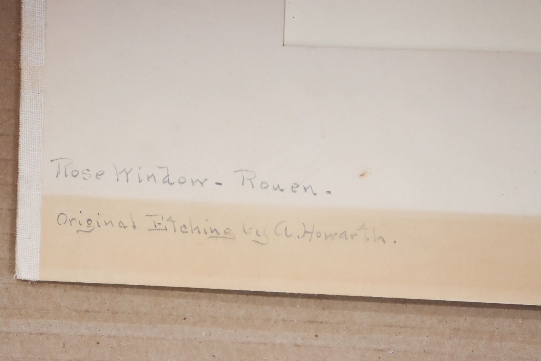Original etching by A E Howarth titled “Rose Window, Rouen”. Howarth was a British