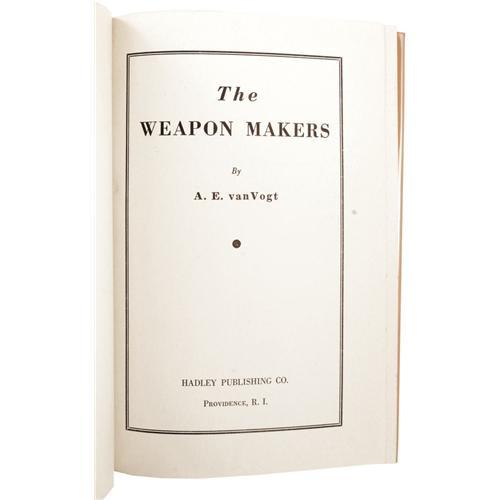<B>A. E. van Vogt:<I> The Weapon Makers.</B></I></B></I> (Providence: The Hadley Publishing Company, 1947), first edition of 1,000 copies printed, 224 pages, jacket and frontis by Allan Halladay, maroon cloth with gilt titles, 12mo (5.5" x 7.75"), fine in a fine unclipped jacket. <I>From the Ventura Collection.</B></I><BR><BR><b>Shipping:</b> Books & Catalogs (<a target="_blank" href="http://www.heritageauctions.com/common/shipping.php">view shipping information</a>)
